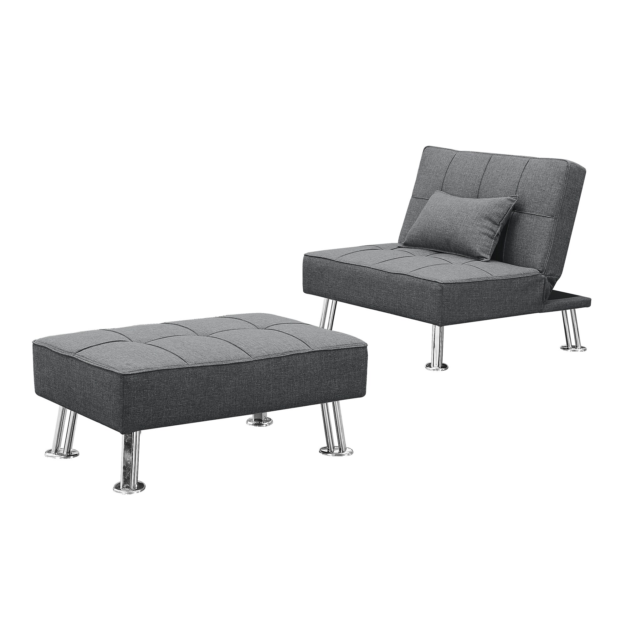 2Pcs Folding Sofabed Set with Single Sofabed and Ottoman,Dark Gray