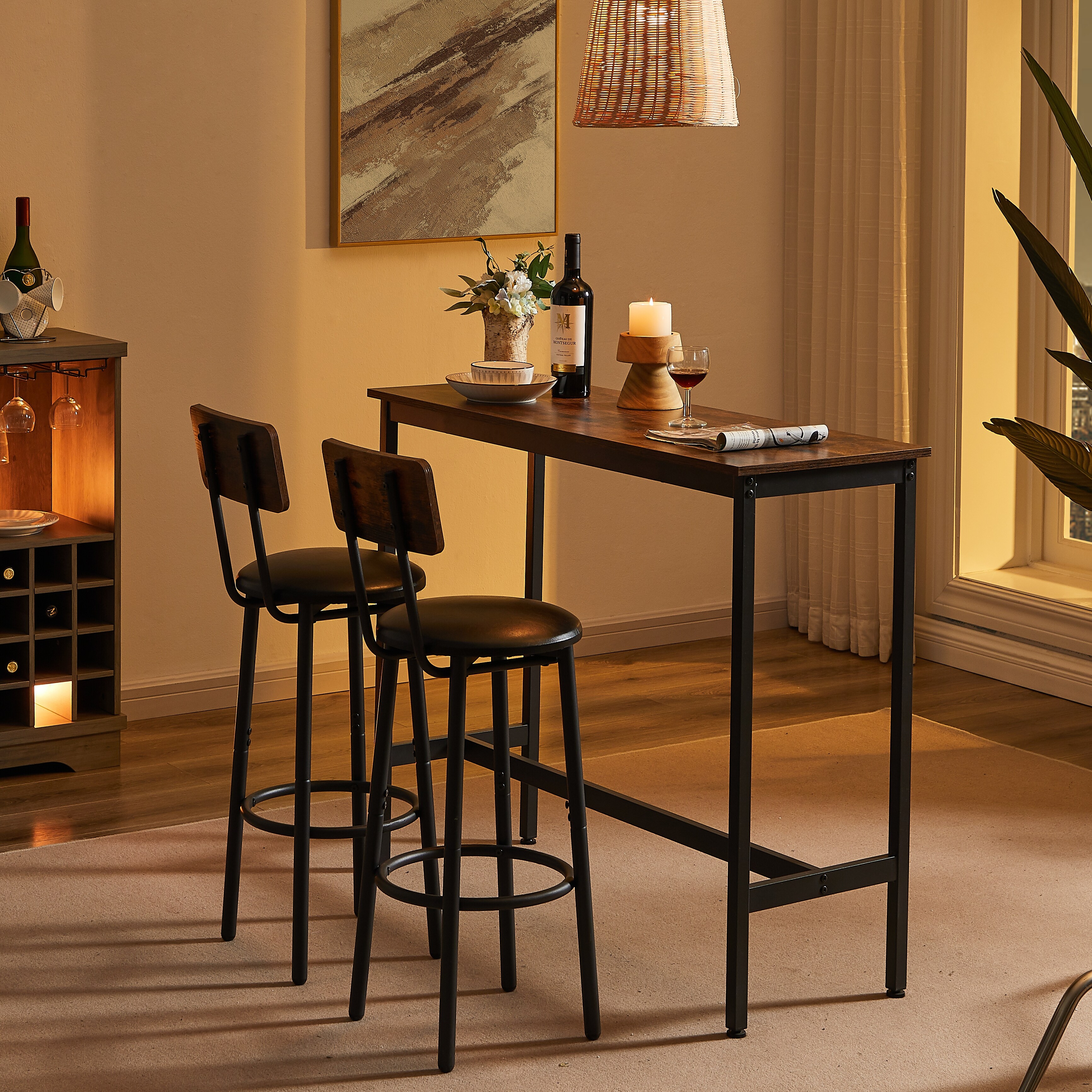 3-Piece Bar Table Set Dining Set with Rectangular Dining Table and PU Leather Seat Bar Chairs for Living Room, Rustic Brown