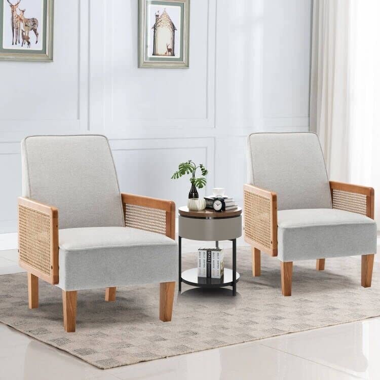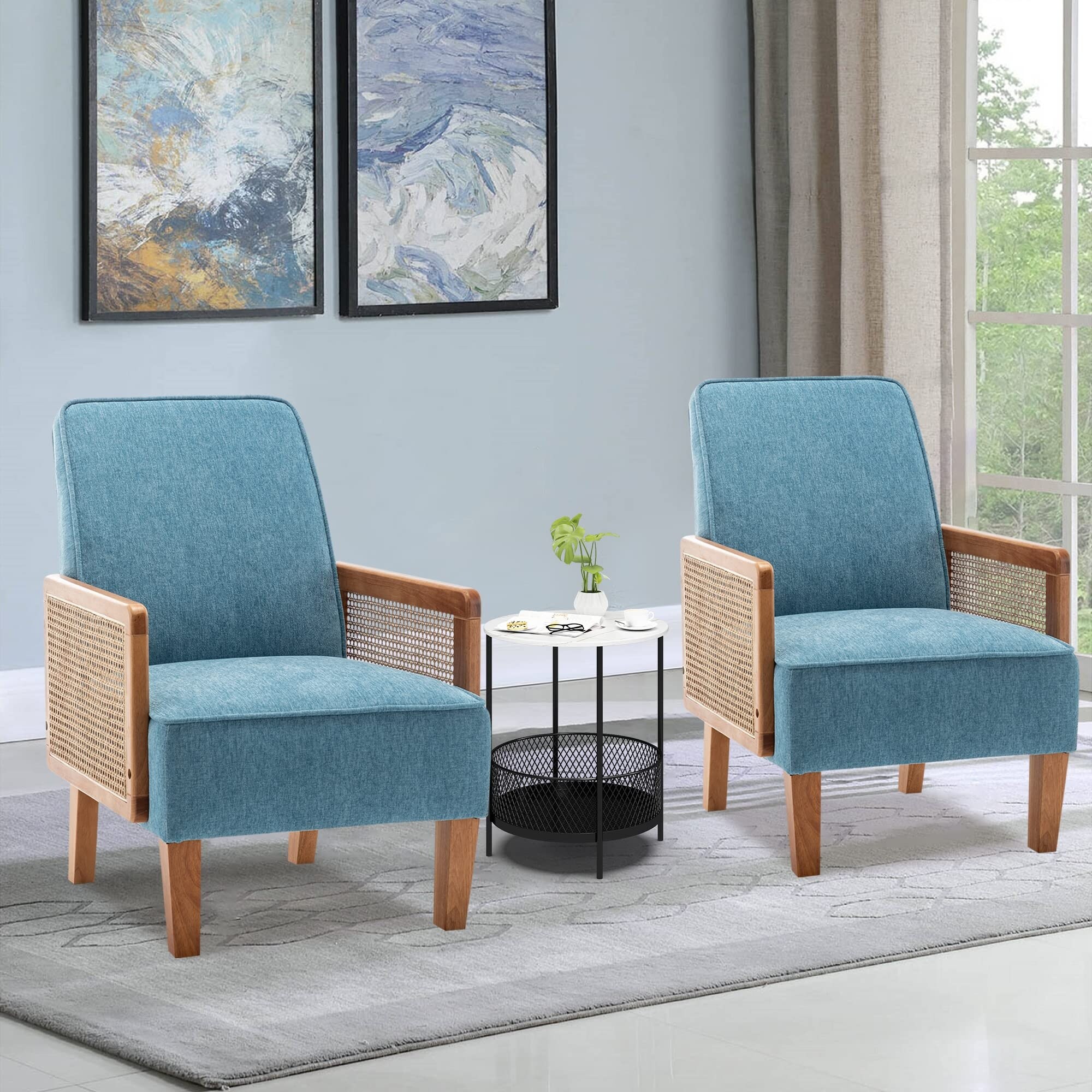 Andeworld Accent Chair set of 2 with Rattan Arms for living room chairs Side Chairs Bedroom Chairs with Curved Backrest