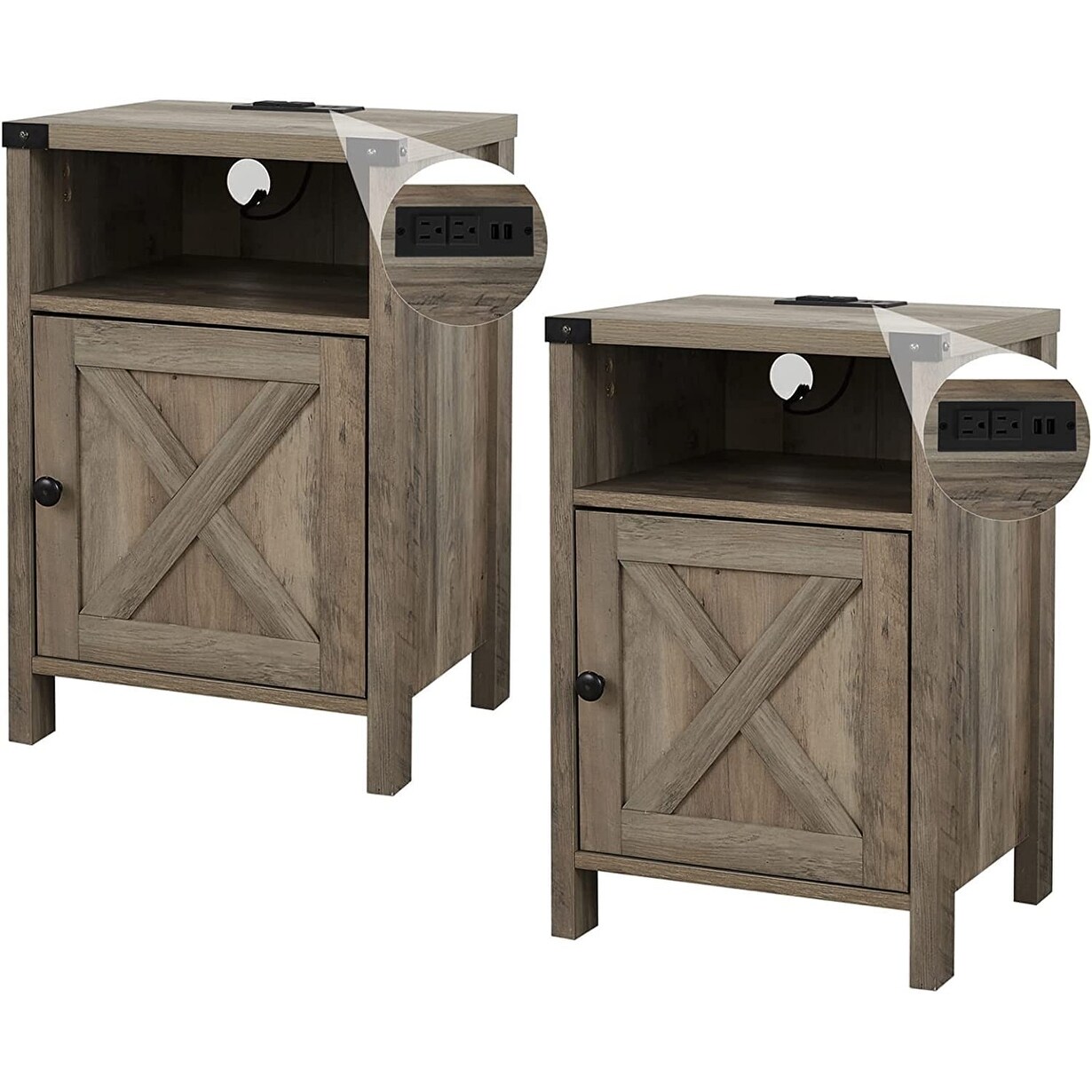 Farmhouse Nightstand Set of 2 with Charging Station,Industrial Bedside Table with Storage Living Room Bedroom Side Table