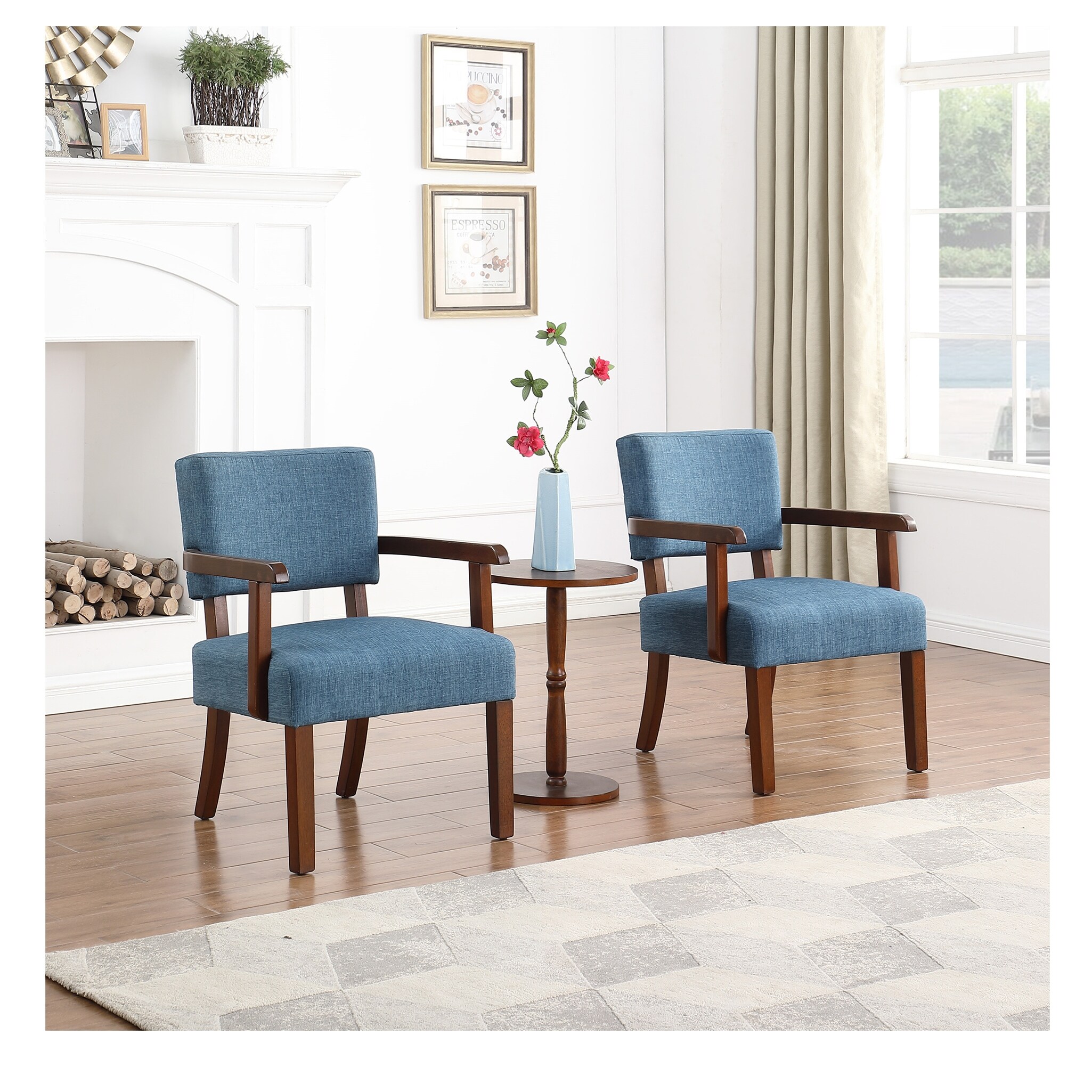 Wood and Fabric Tufted Living Room/Bedroom Accent Chair Set of 2 with Side Table