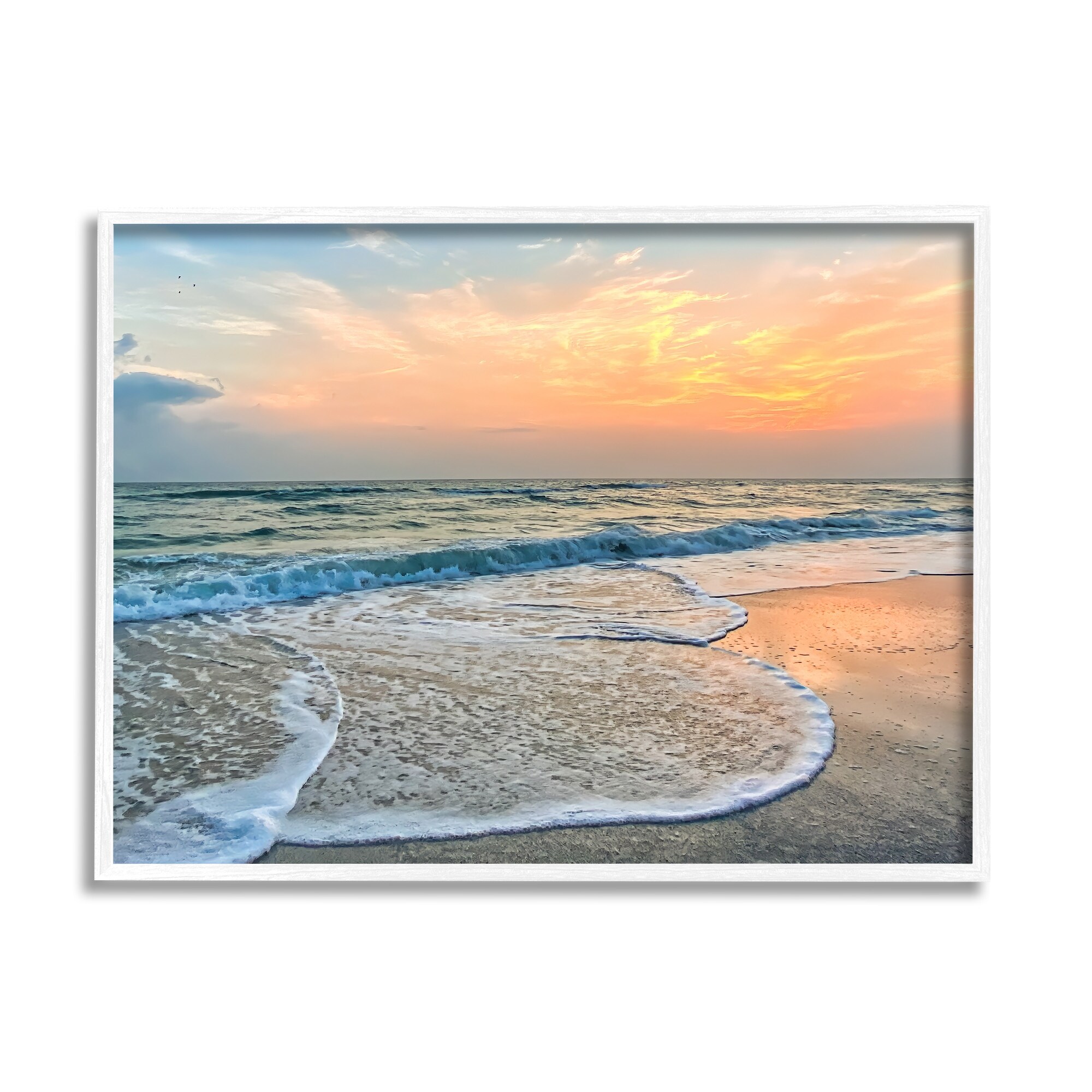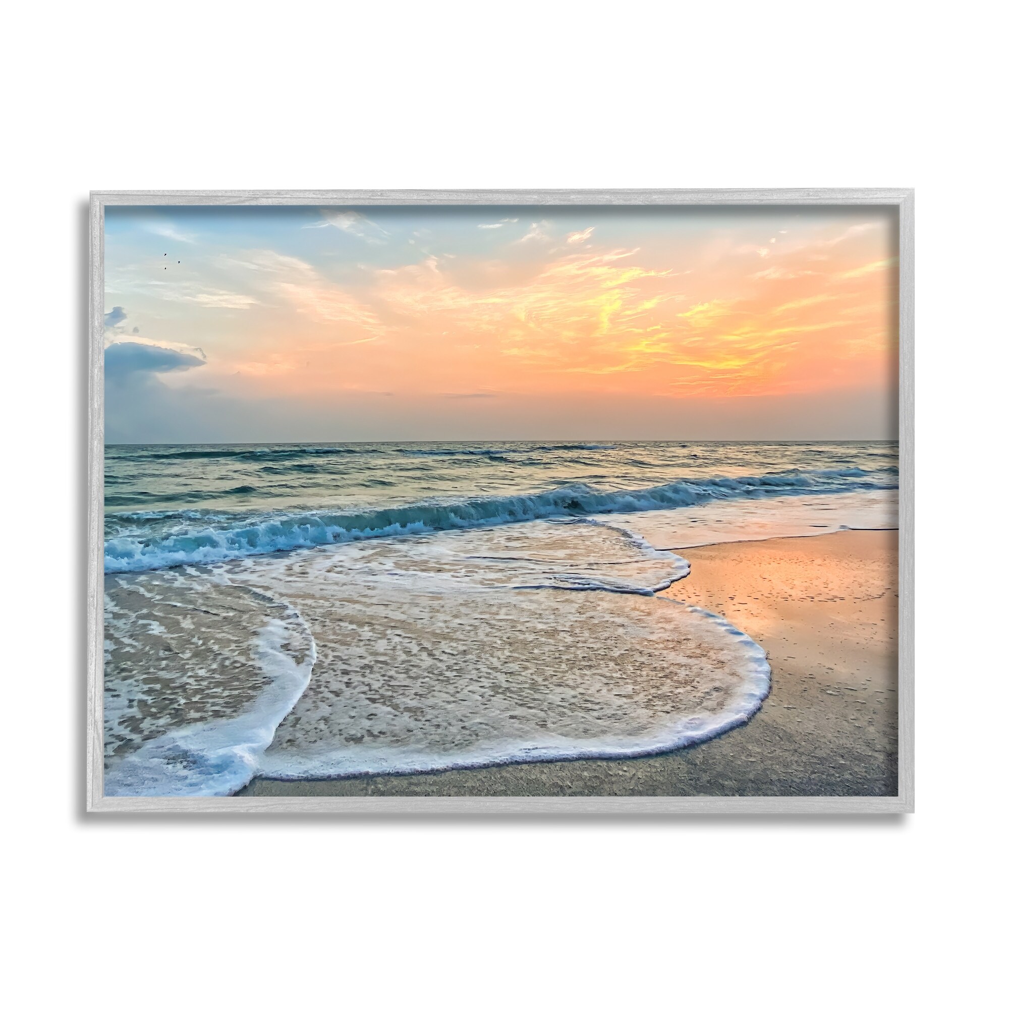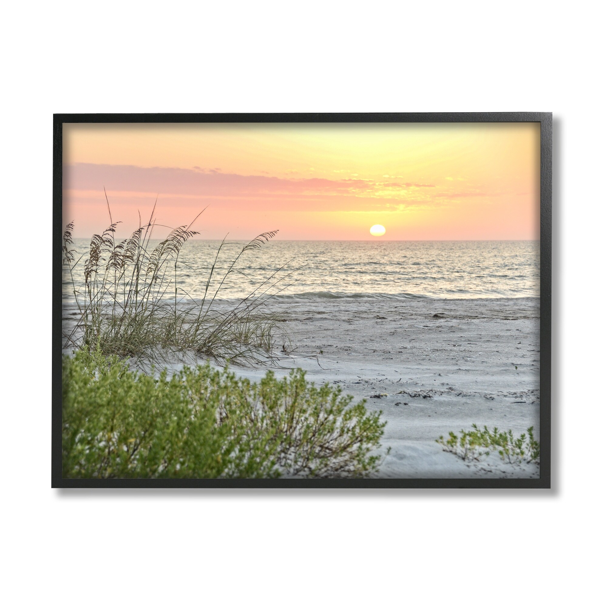 Stupell Ocean Shore Reeds Sunset Horizon Framed Giclee Texturized Wall Art, Design By Mary Lou Photography