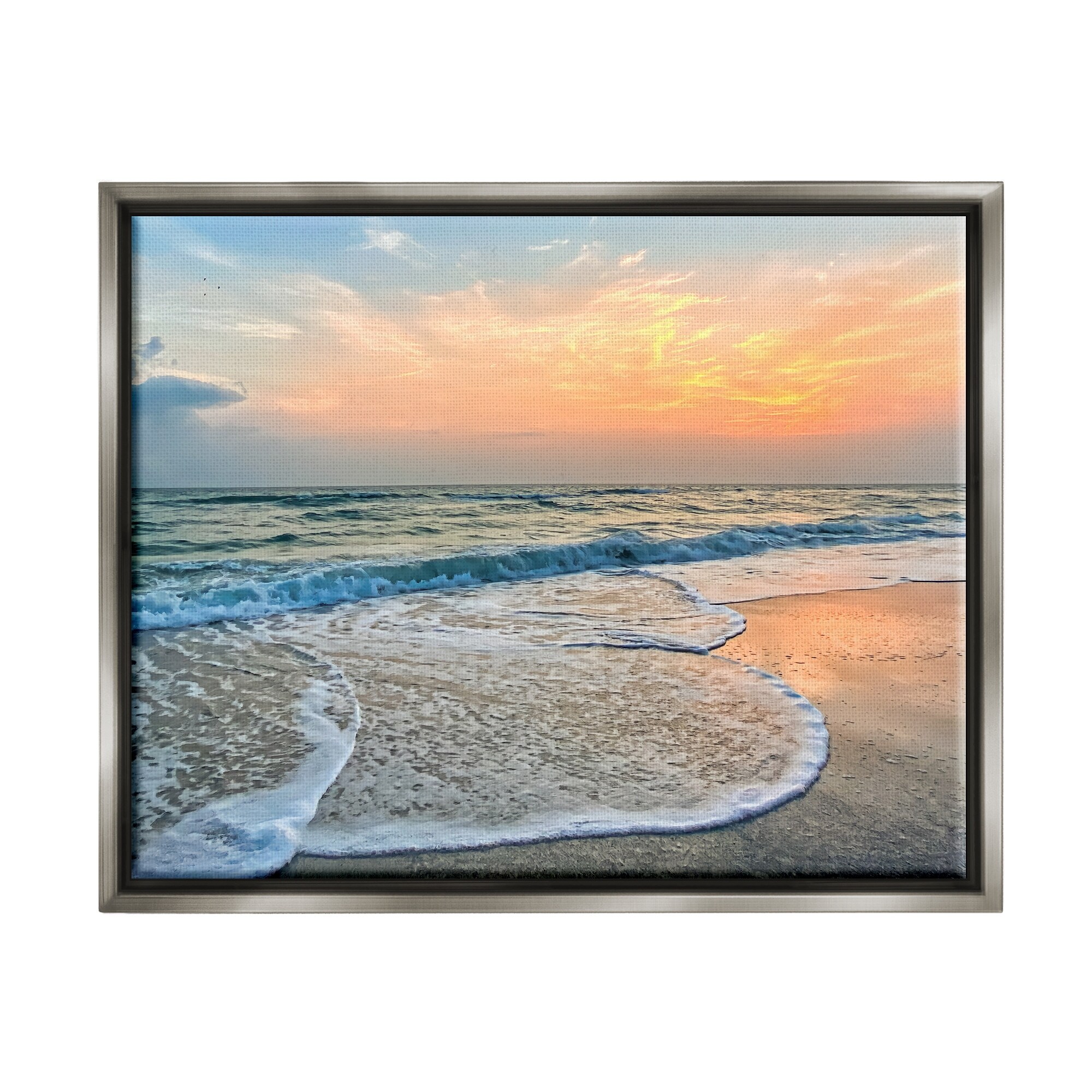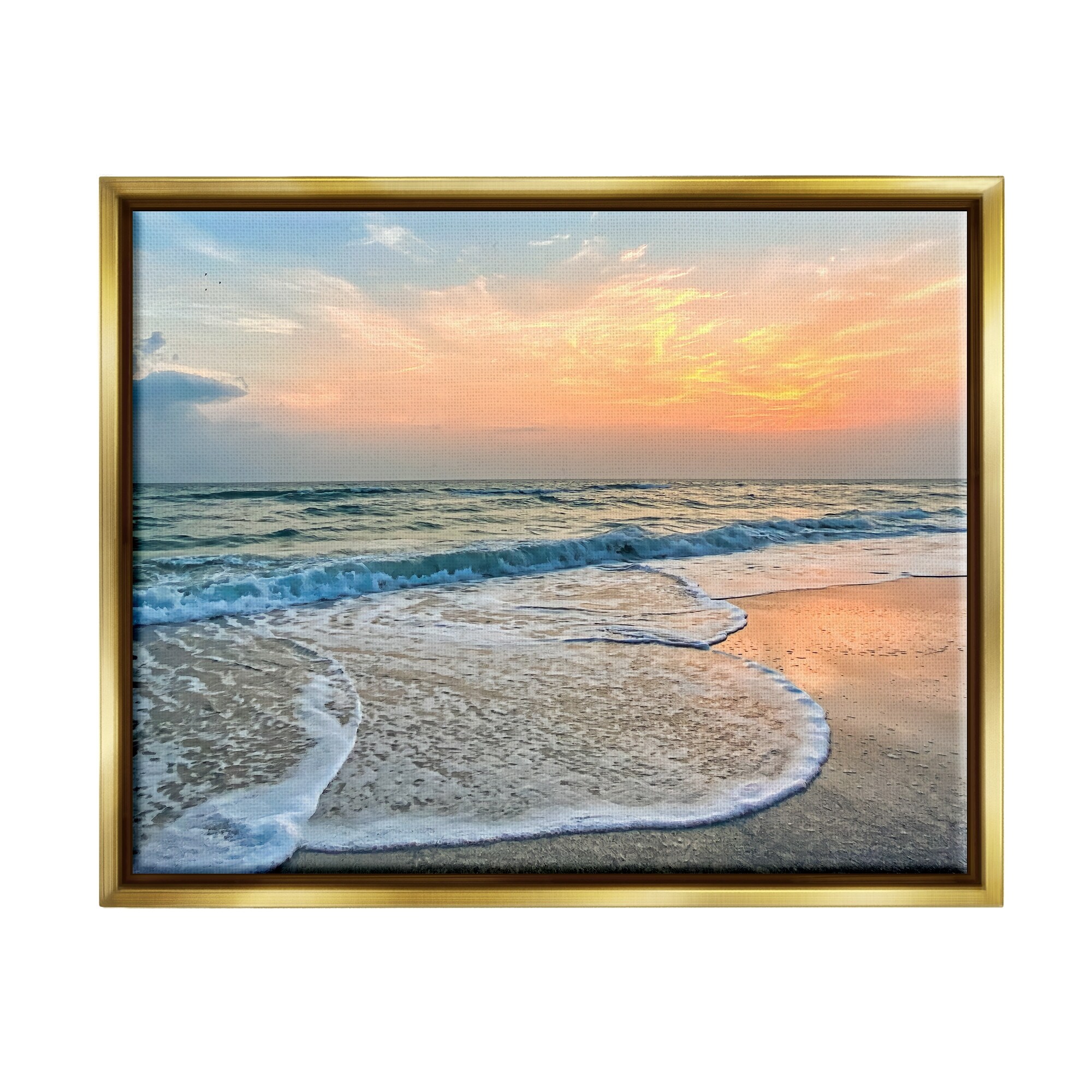 Stupell Ocean Shore Reeds Sunset Horizon Floating Framed Canvas Wall Art, Design by Mary Lou Photography