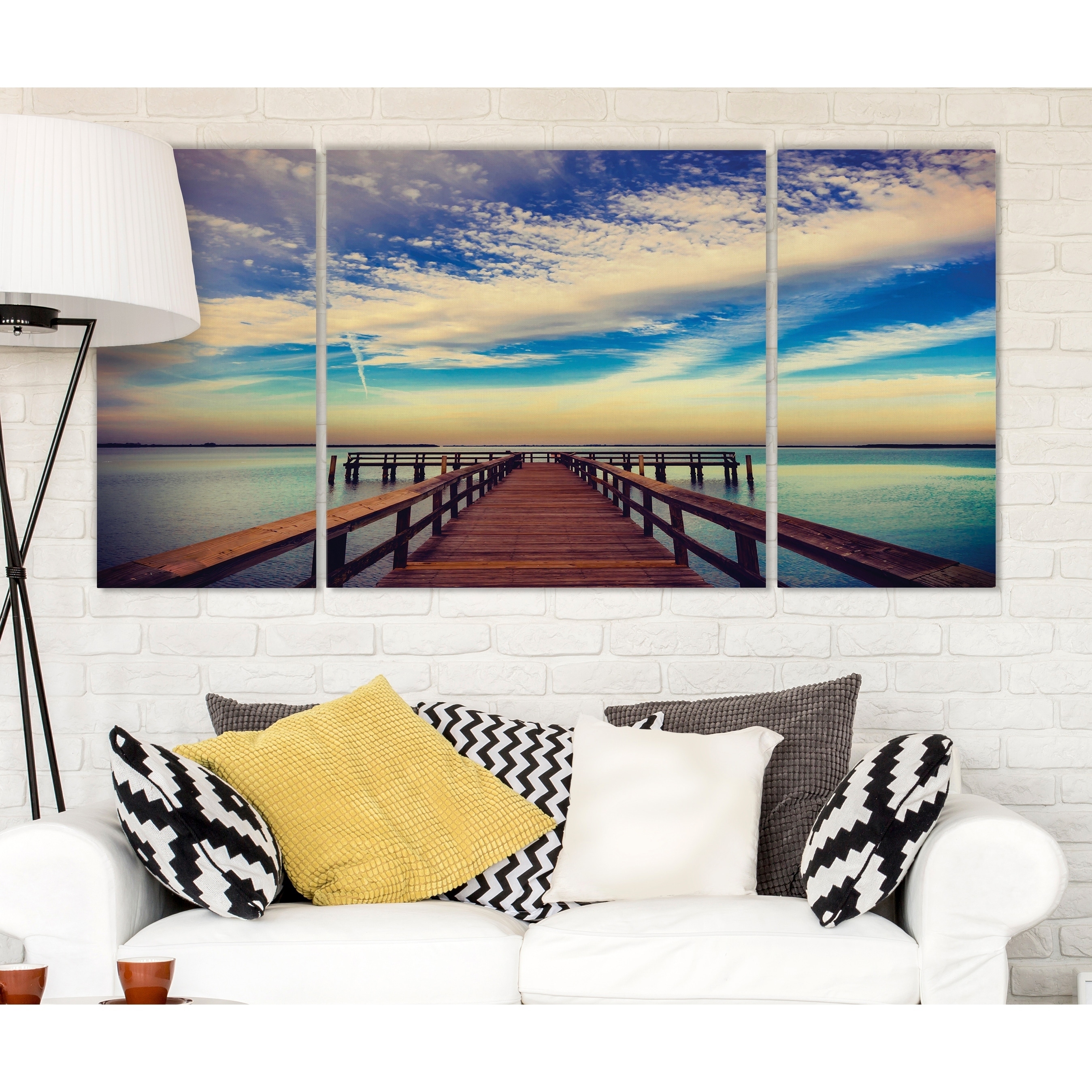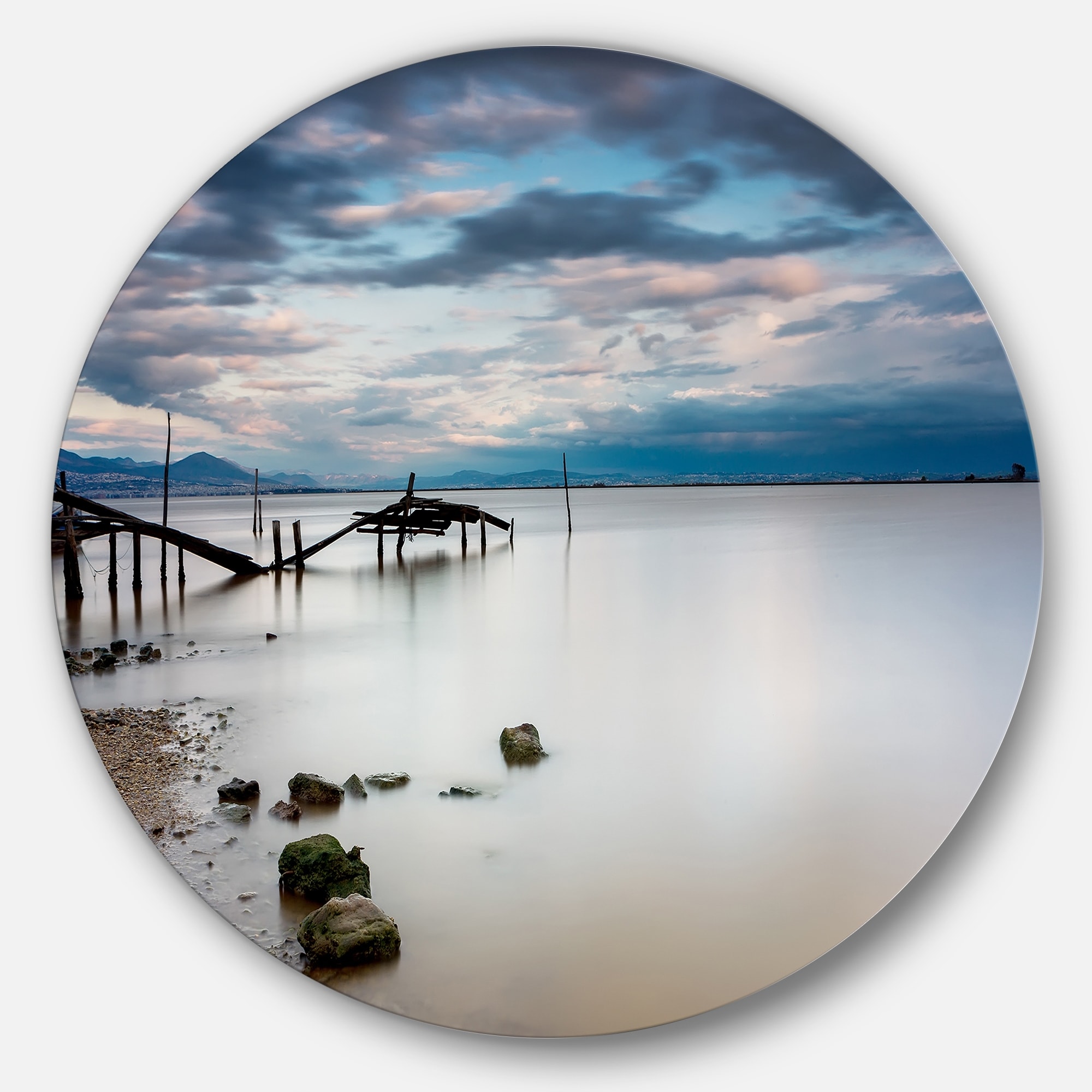 Designart 'Magic Sunrise with Old Wooden Pier' Sea Pier and Bridge Circle Wall Art