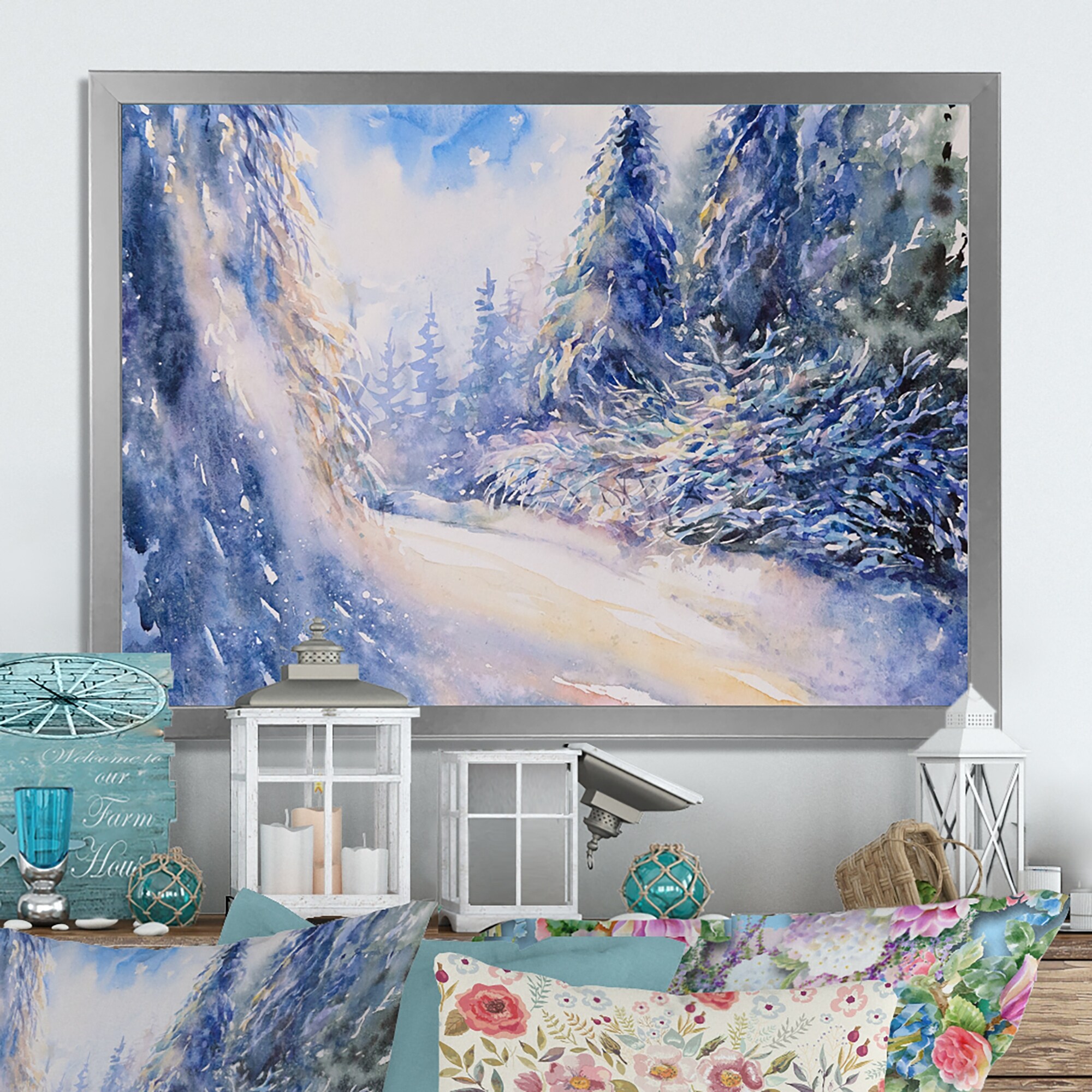 Designart "Magic Winter Landscape Under Snow" Cabin & Lodge Framed Wall Art