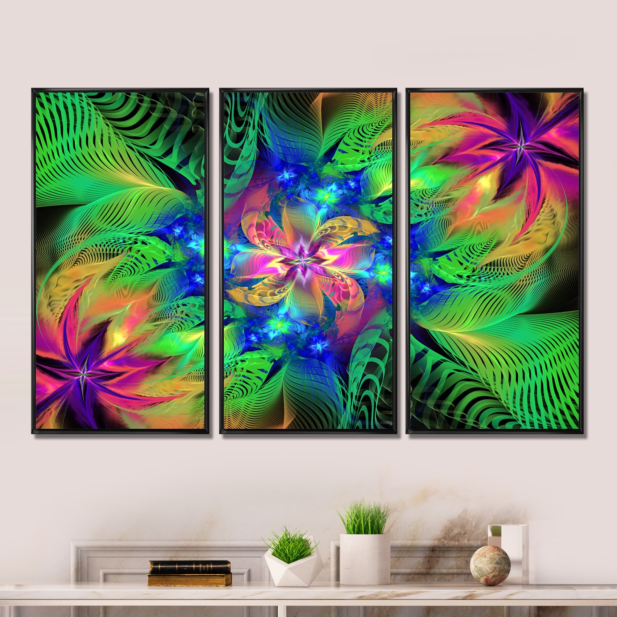 Designart "Fractal Portal Magic XV" Modern & Contemporary Framed Canvas Wall Art Set of 3 - 4 Colors of Frames