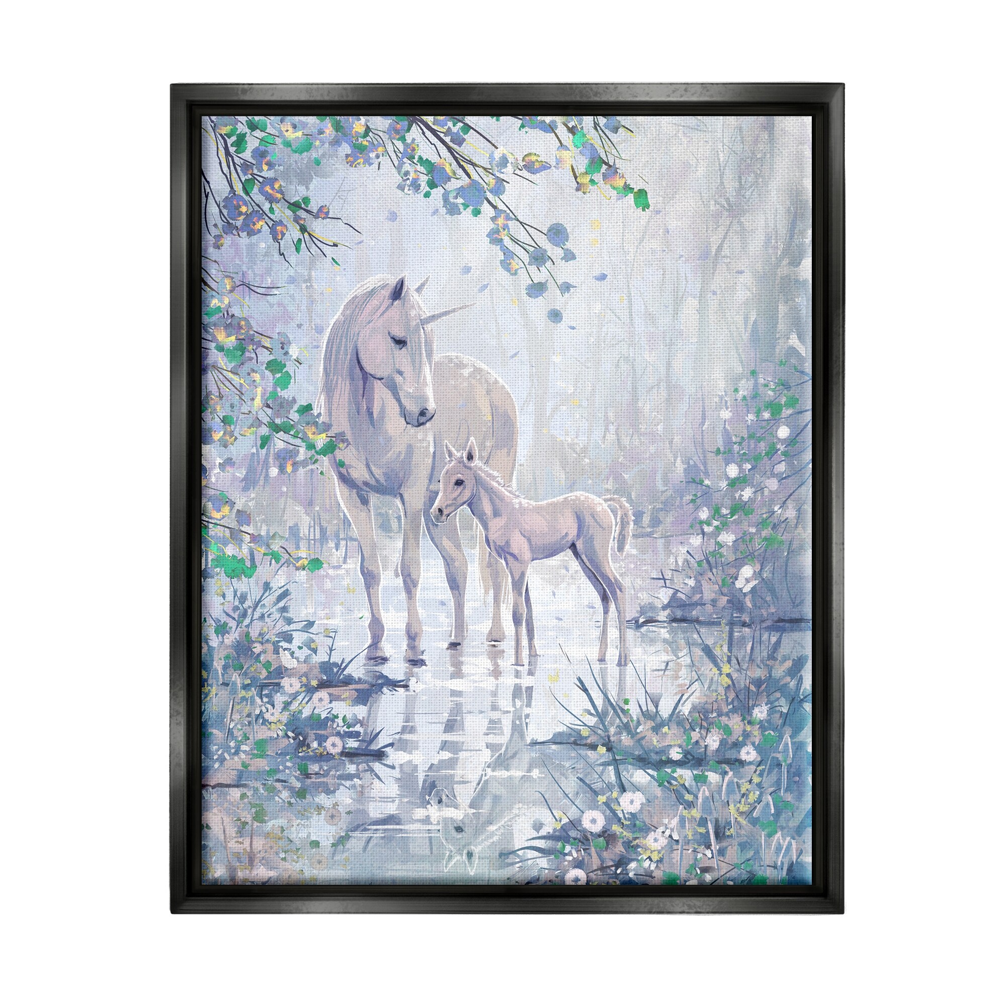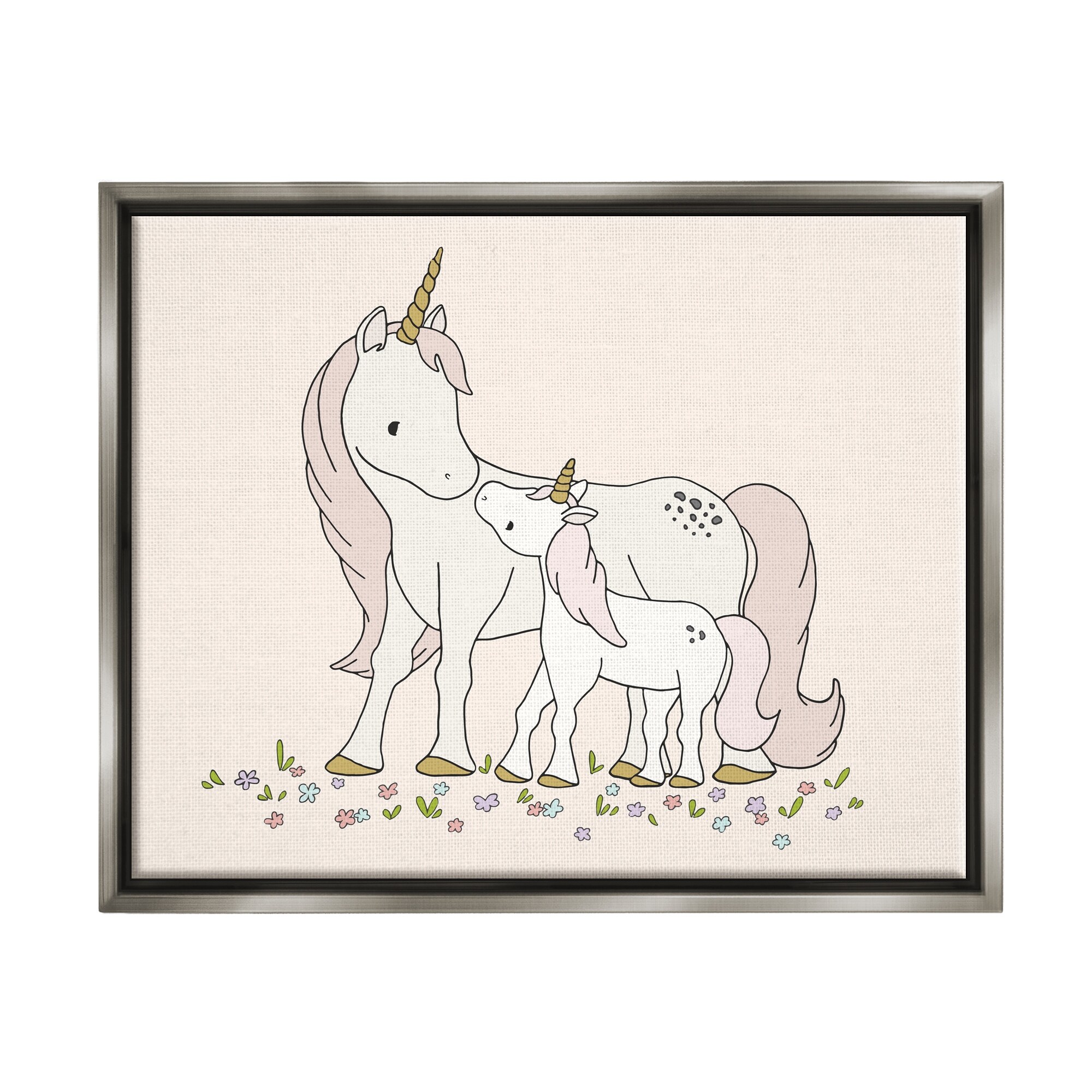 Stupell Magical Unicorn Mother & Baby Family Flower Meadow Floater Frame, Design by Sweet Melody Designs