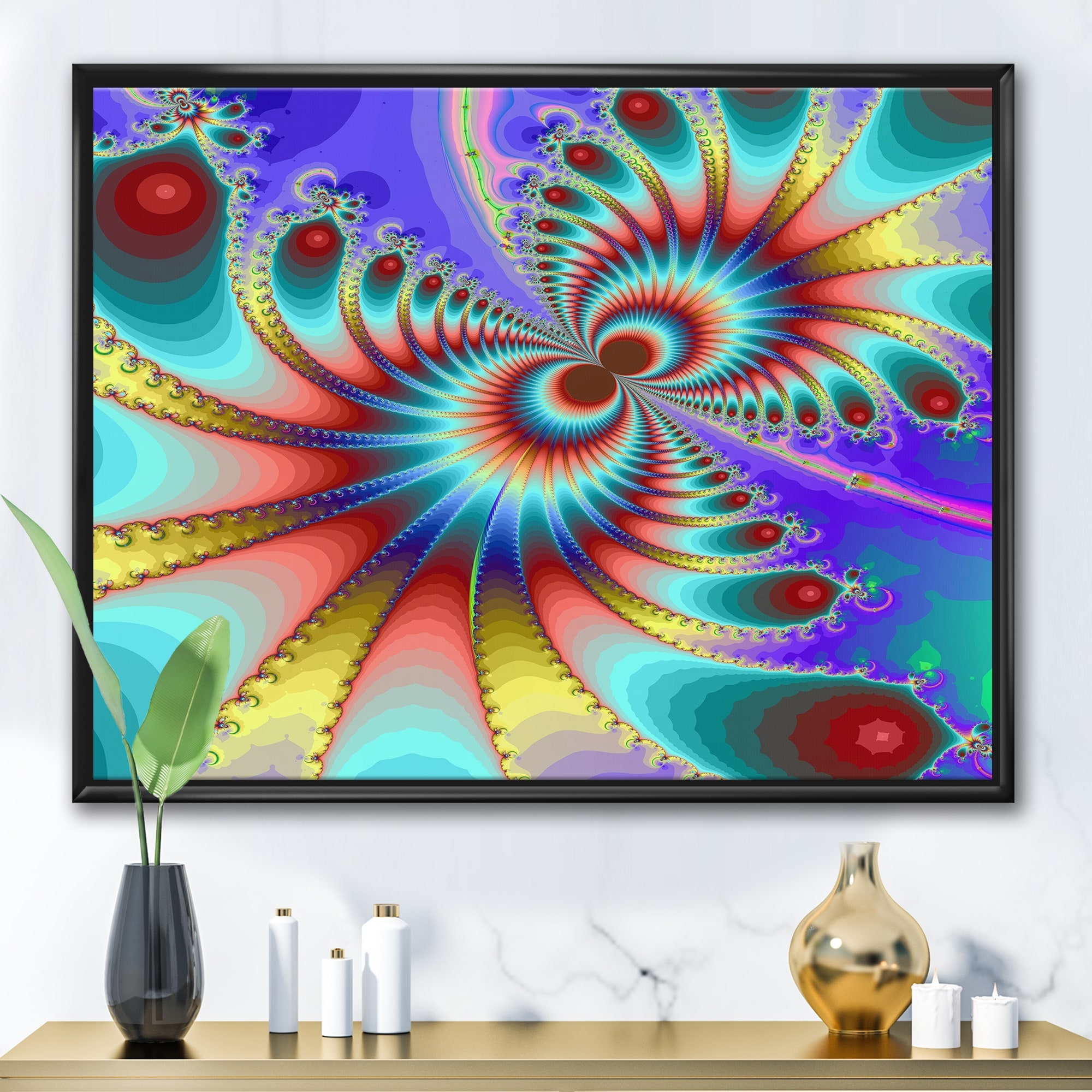 Designart "Fractal Portal Magic I" Modern Framed Canvas Wall Art Print