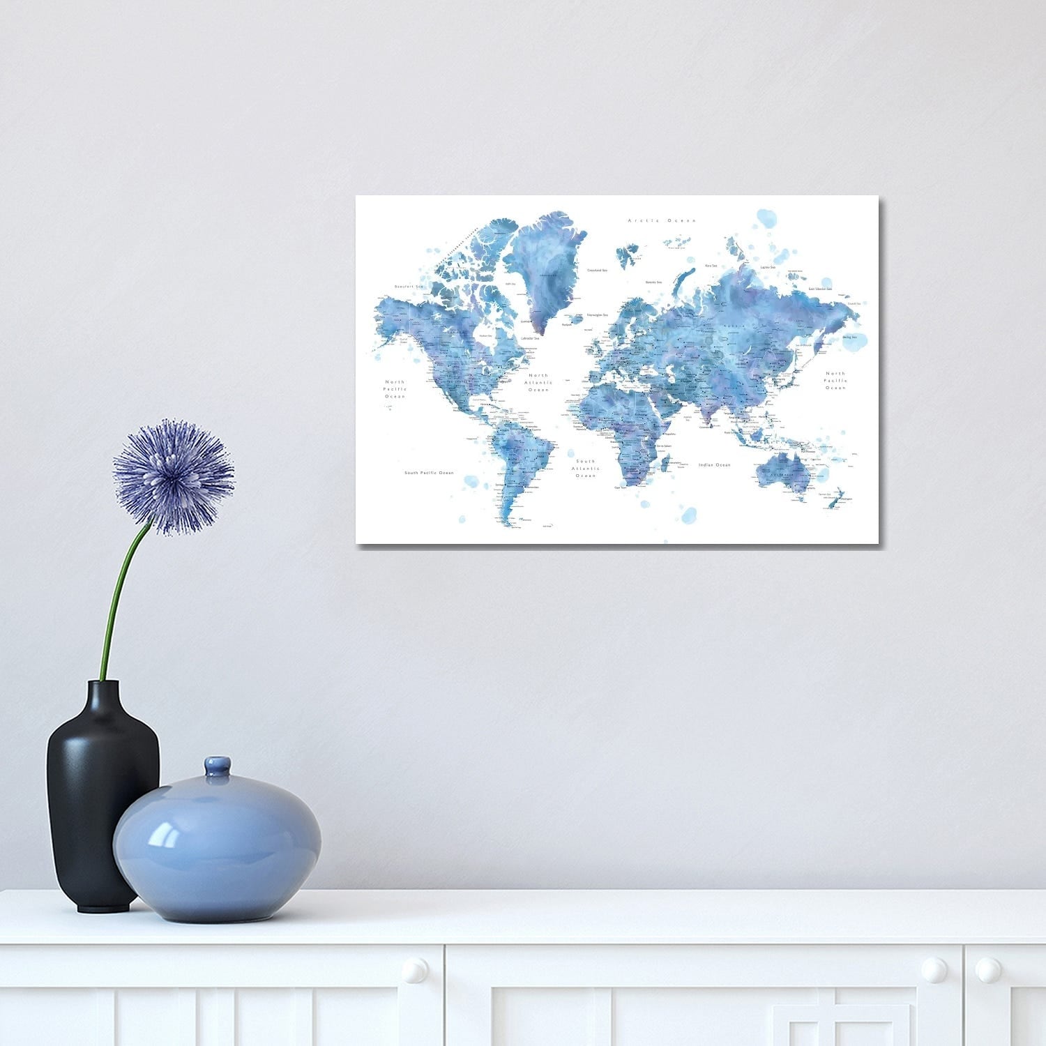 iCanvas "World Map With Main Cities Tanya" by blursbyai Canvas Print
