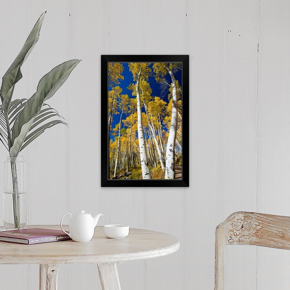 "Aspen trees in a forest, Maroon Bells, Maroon Creek Valley, Aspen, Colorado" Black Float Frame Canvas Art