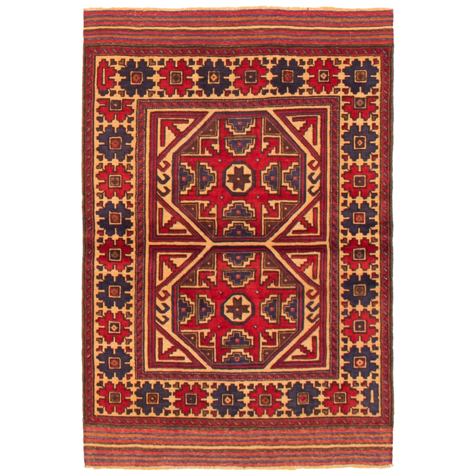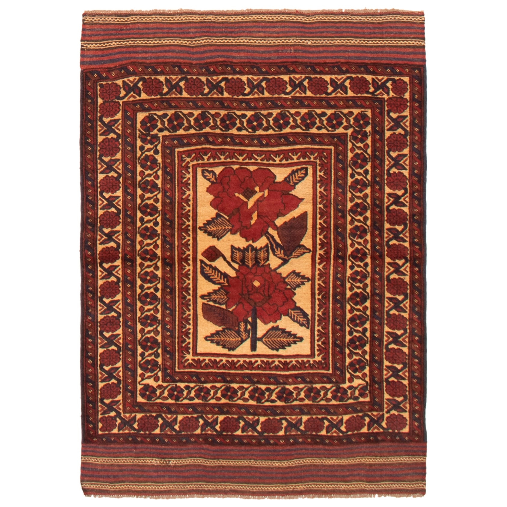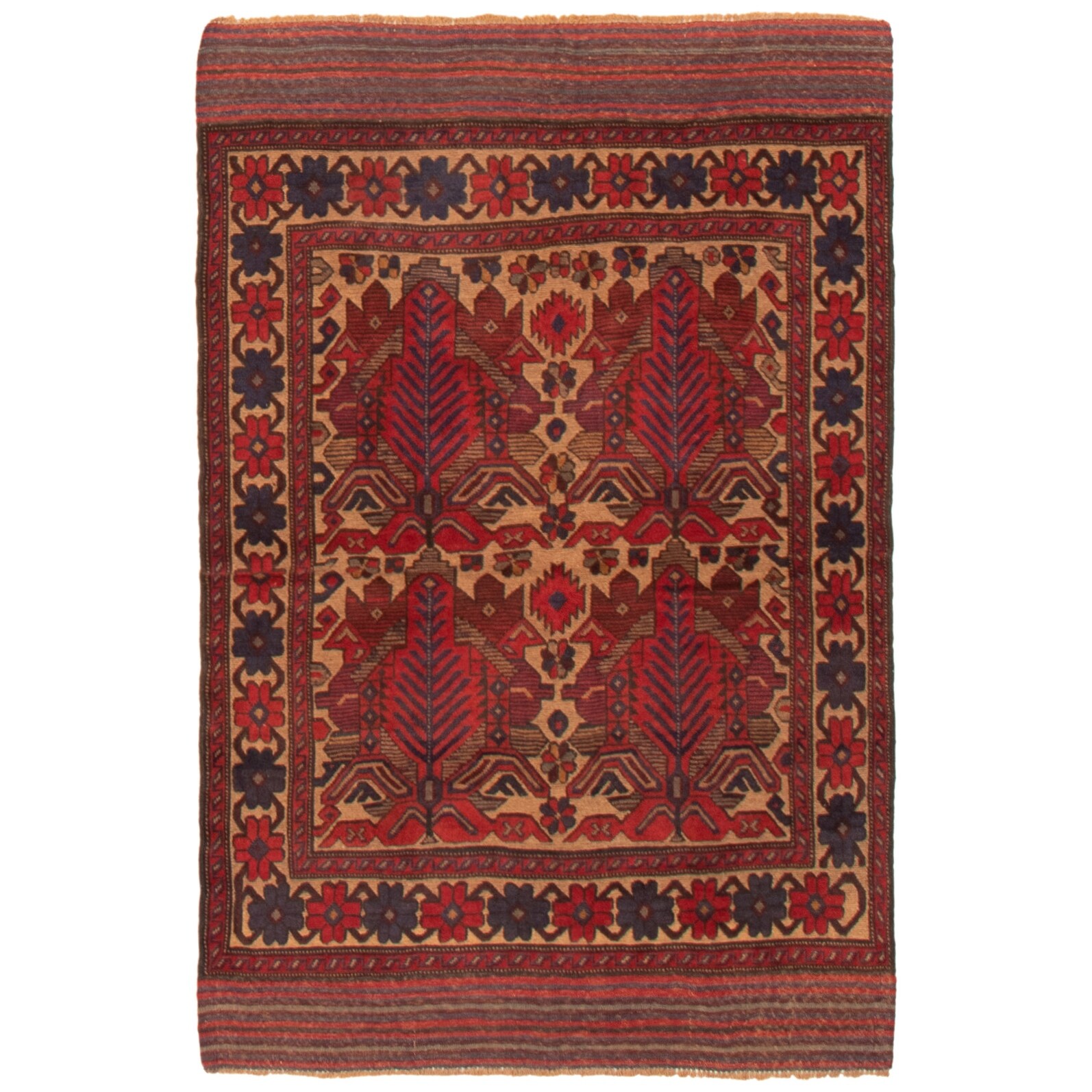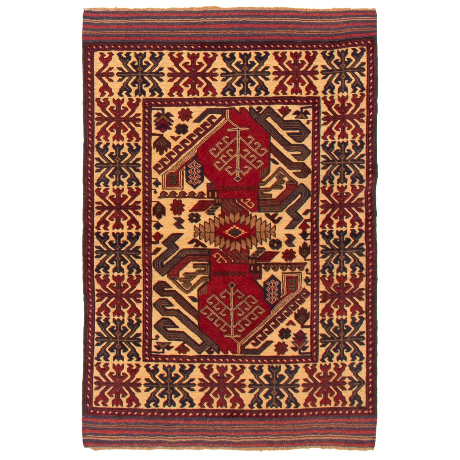 Red/ Rust Tan Oriental Area Rug Wool Traditional Oriental Area Rug - 4'1" x 6'2" - 4'1" x 6'2"