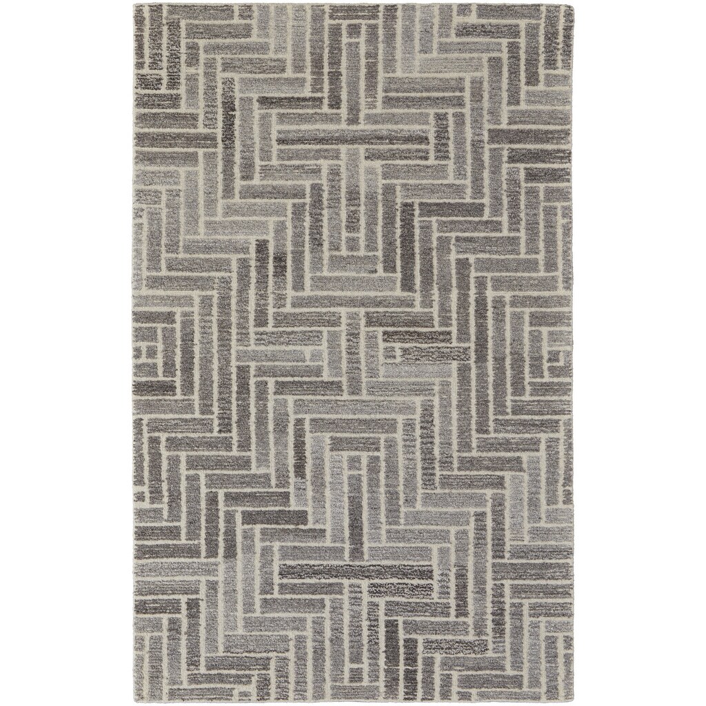 HomeRoots 5' X 8' Taupe Gray And Tan Wool Geometric Tufted Handmade Area Rug - 5' x 8'