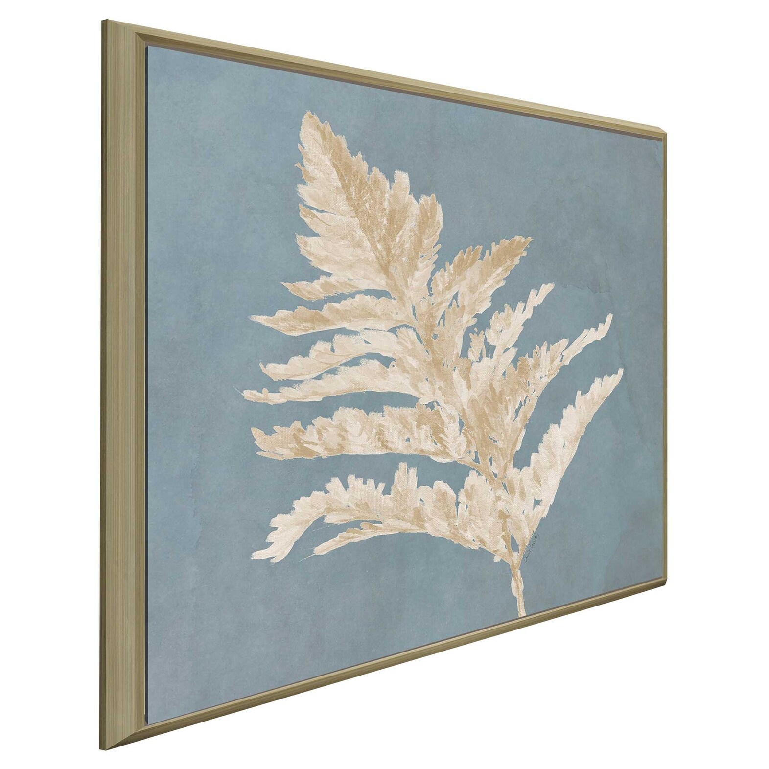 "Tan Leaf on Blue Square II" Print on Floating Canvas