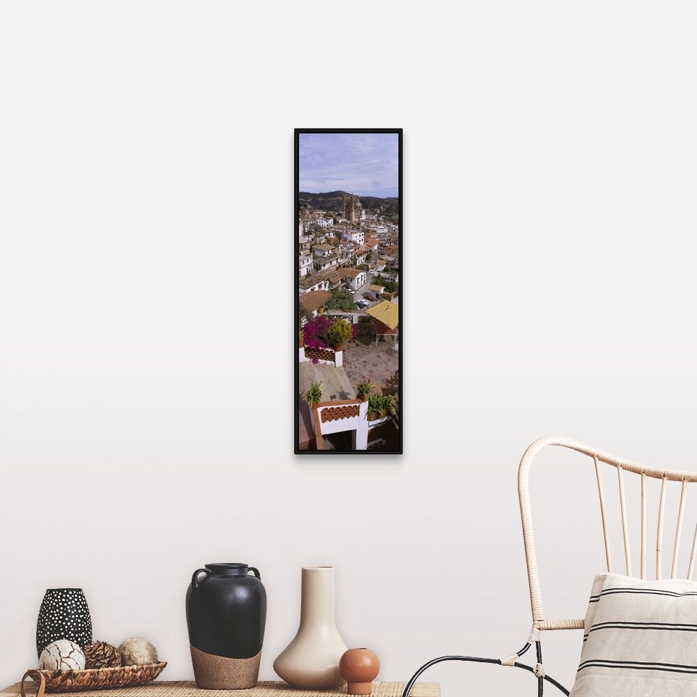 "High angle view of a town, Taxco, Mexico" Black Float Frame Canvas Art