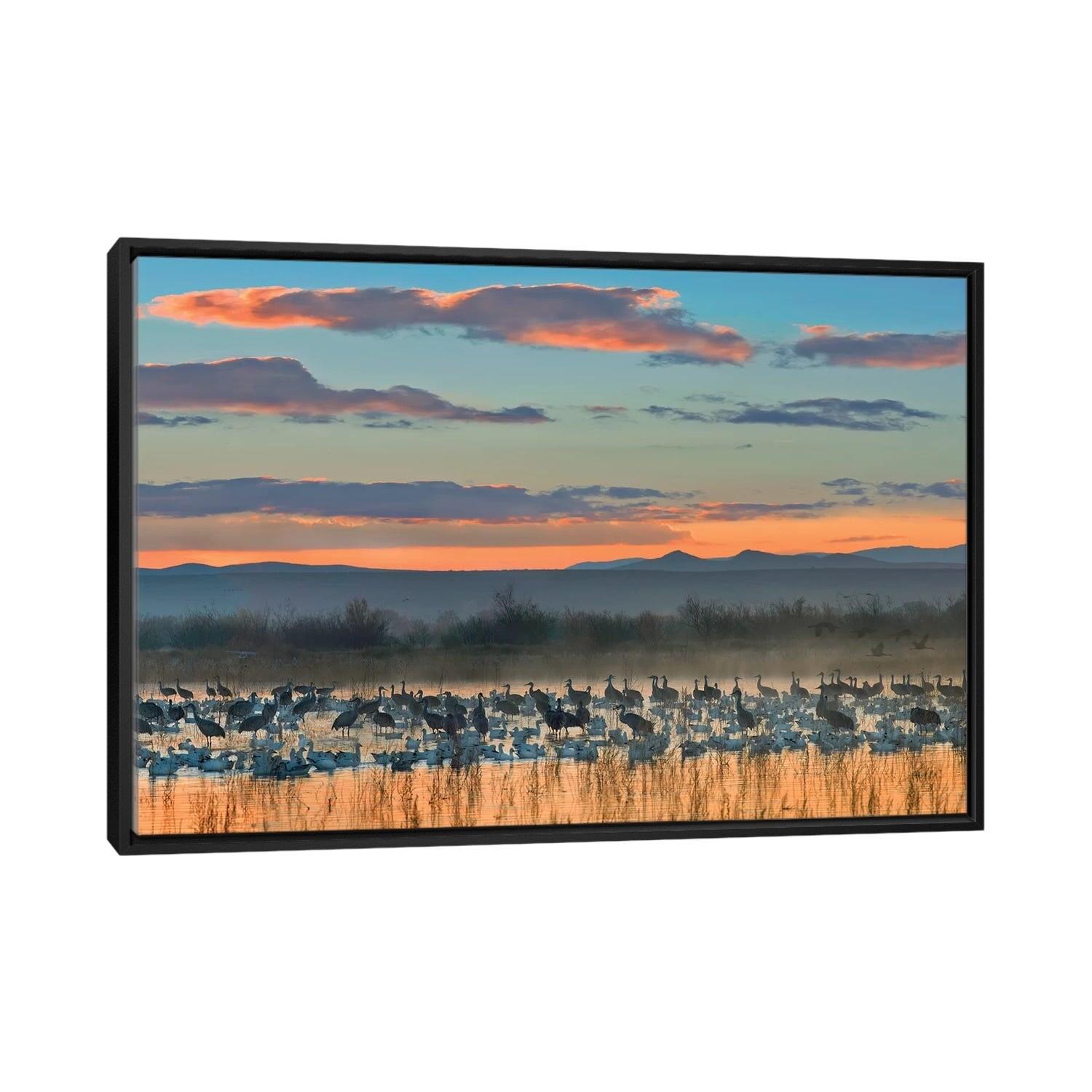 iCanvas "Snow Goose And Sandhill Crane Flock Silhouetted in Water At Sunset, New Mexico" by Tim Fitzharris Framed Canvas Print