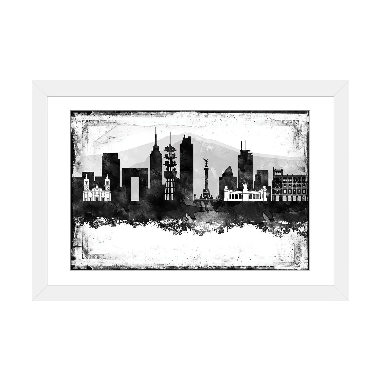 iCanvas "Mexico City Black And White Framed Skylines" by WallDecorAddict