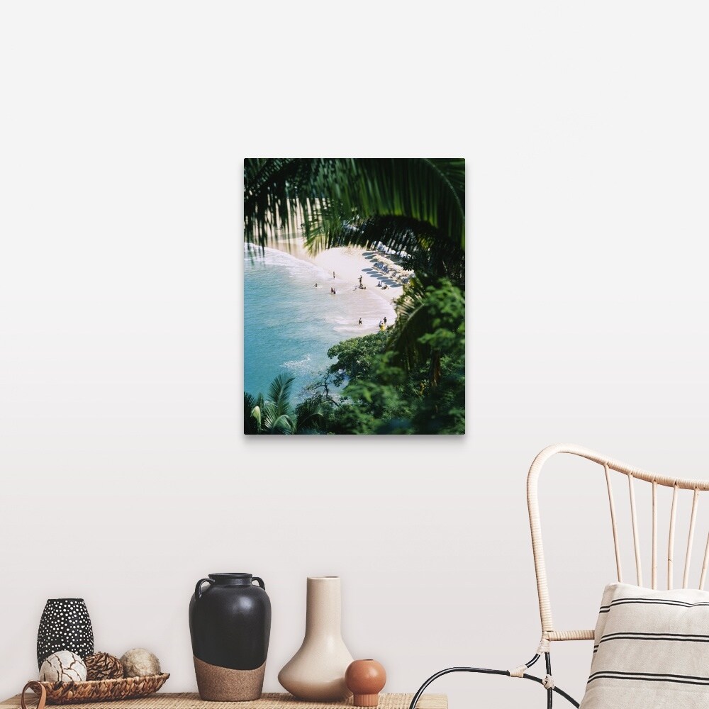 "High angle view of tourists on the beach, Mismaloya Beach, Puerto Vallarta, Mexico" Canvas Wall Art