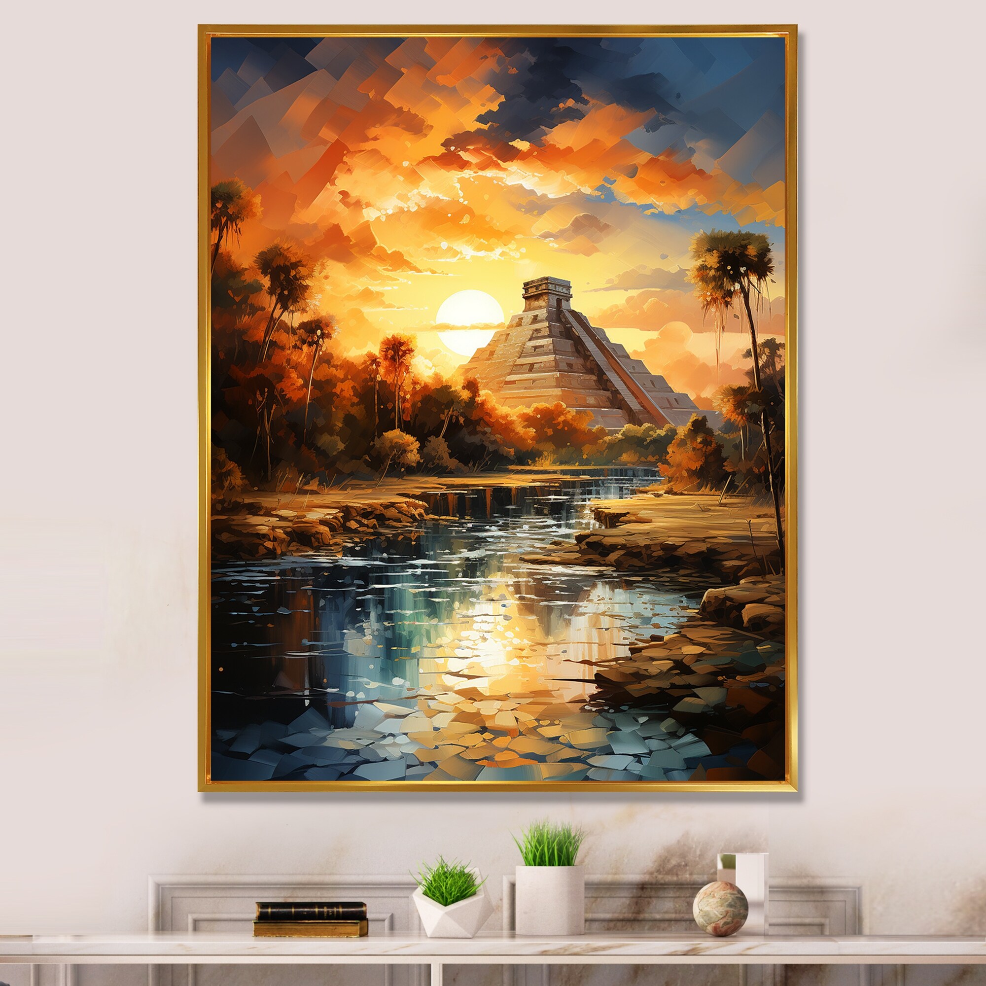 Designart "Mexico Sunset At Chichen Itza III" Mexico Framed Canvas Art Print