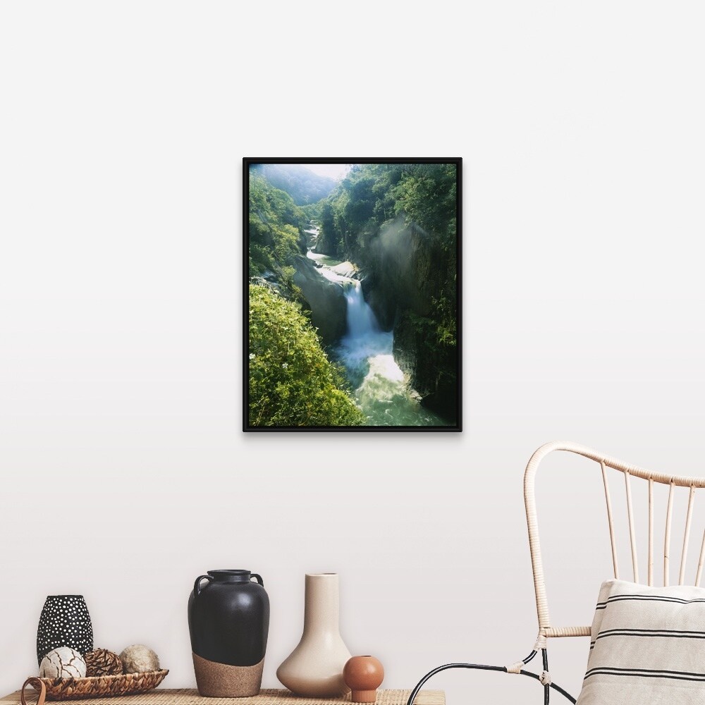 "High angle view of a waterfall in a forest, Mexico" Black Float Frame Canvas Art