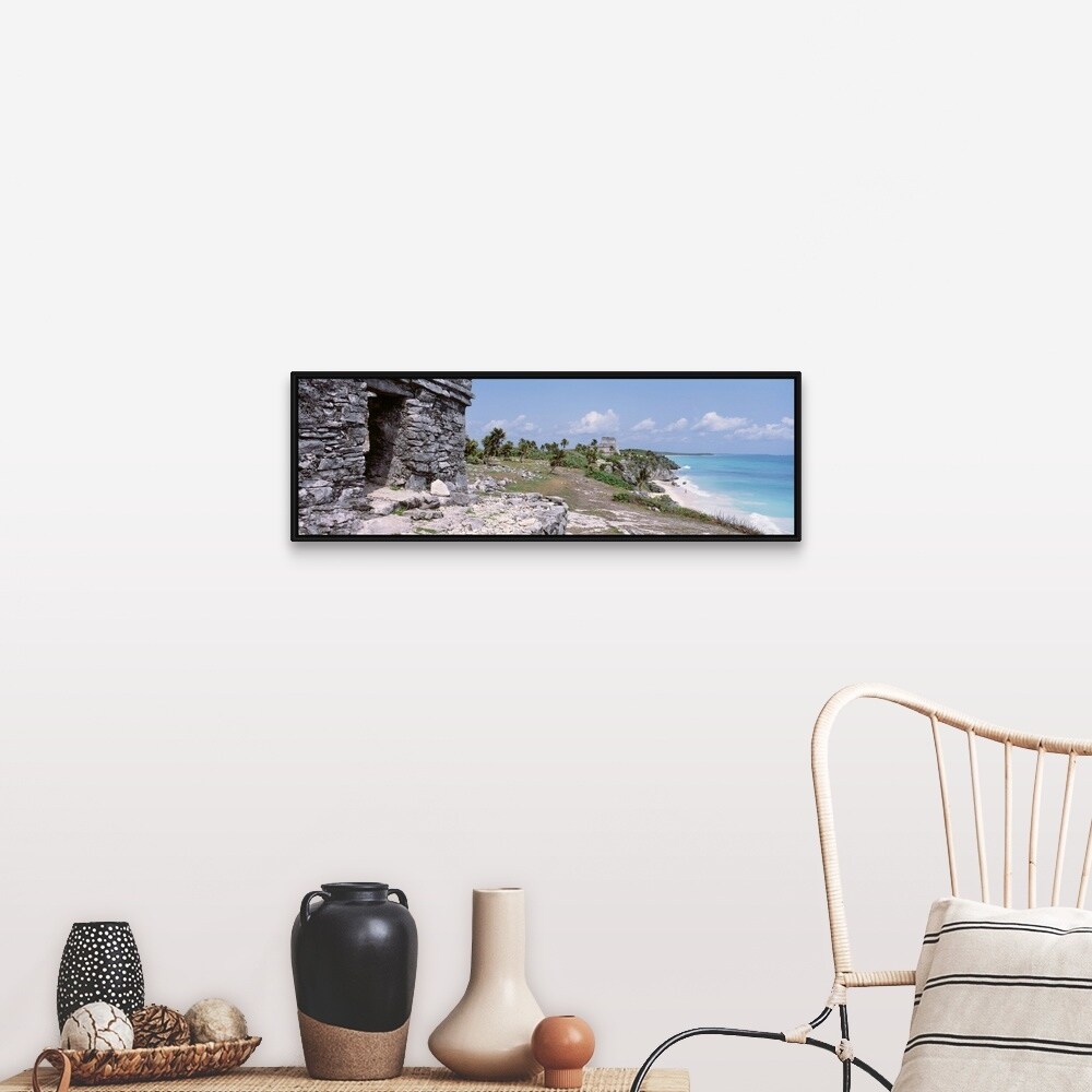 "High angle view of the beach, Tulum, Yucatan Peninsula, Mexico" Black Float Frame Canvas Art