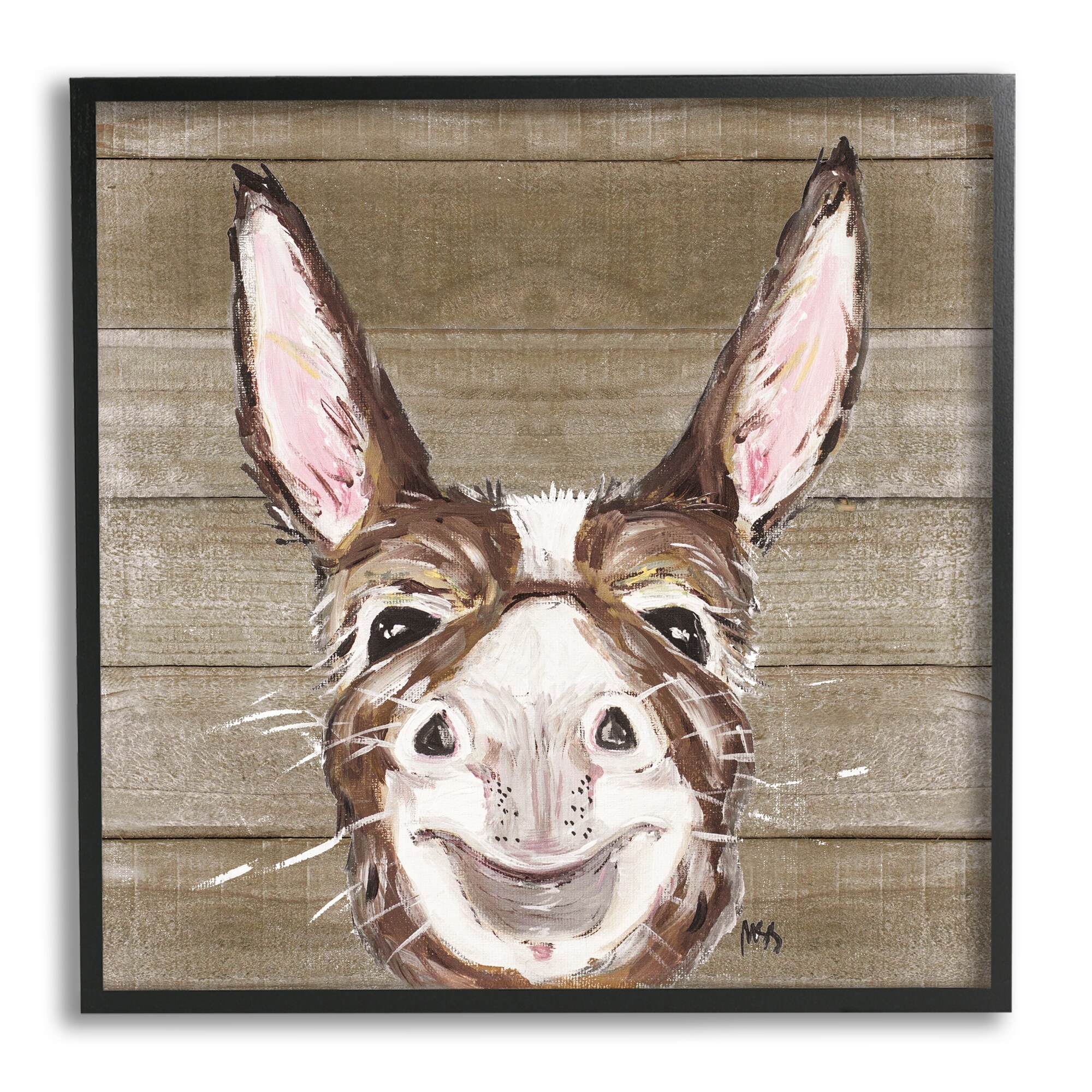 Stupell Industries Expressive Donkey Smiling Farm Animal Planked Pattern Framed Wall Art, Design by Molly Susan Strong