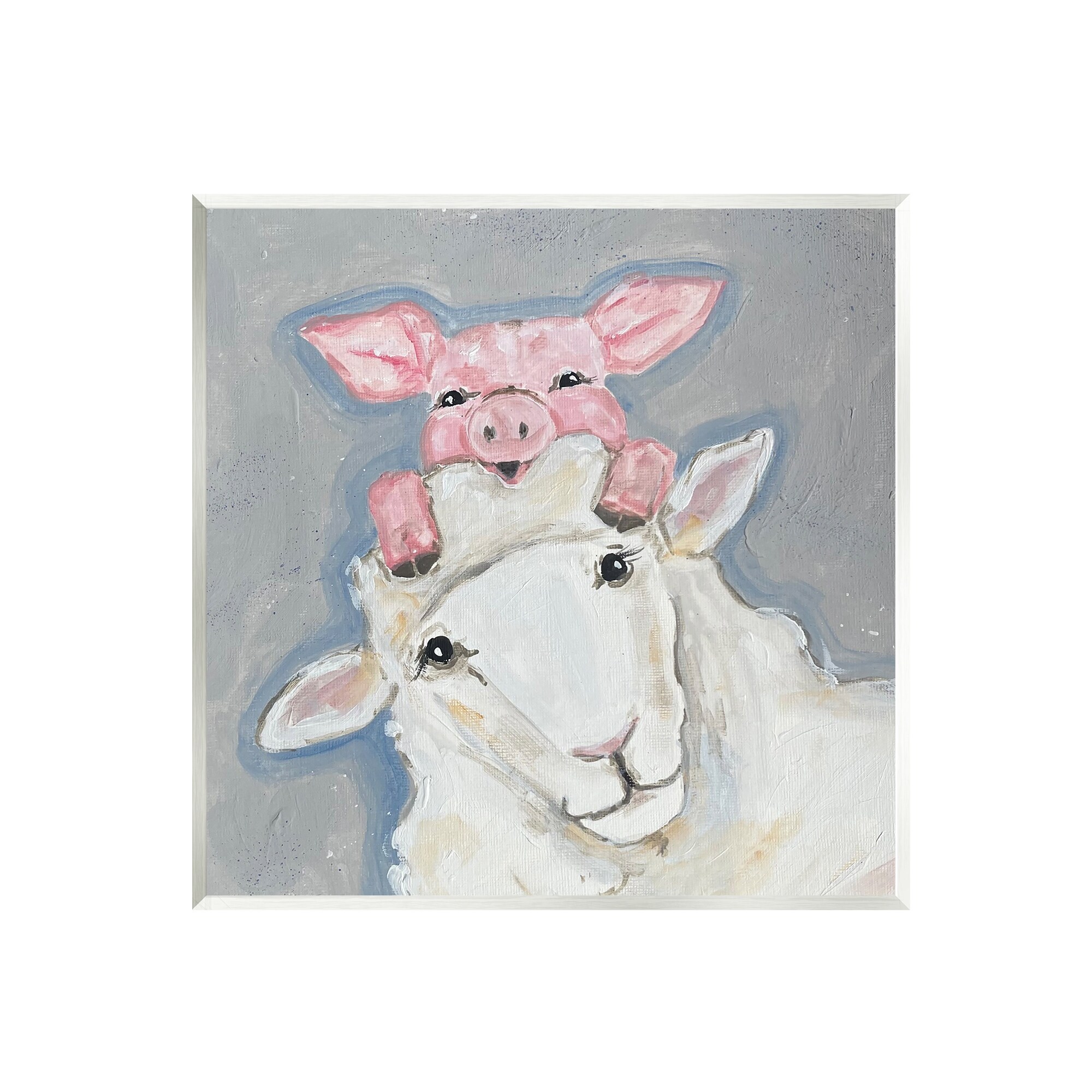Stupell Industries Happy Sheep & Pig Heartwarming Farm Animal Portrait Canvas Wall Art, Design by Molly Susan Strong