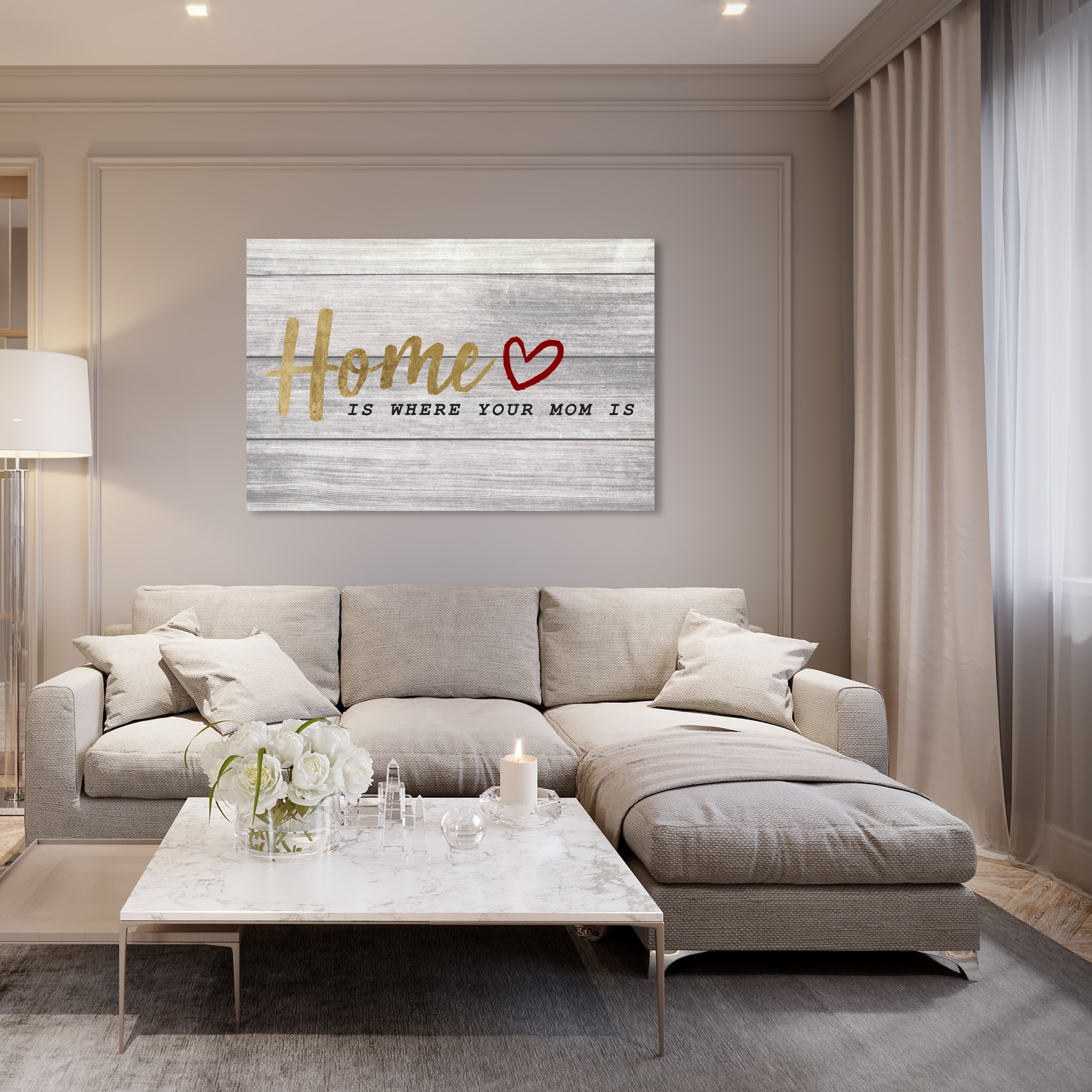 Oliver Gal 'Mom is Home' Typography and Quotes Wall Art Canvas Print - Gold, Gray