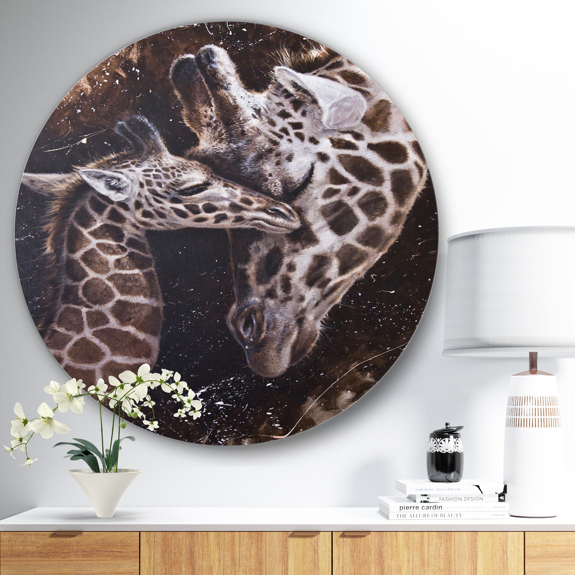Designart 'African baby Giraffe with Mom' Cottage Metal Circle Wall Art