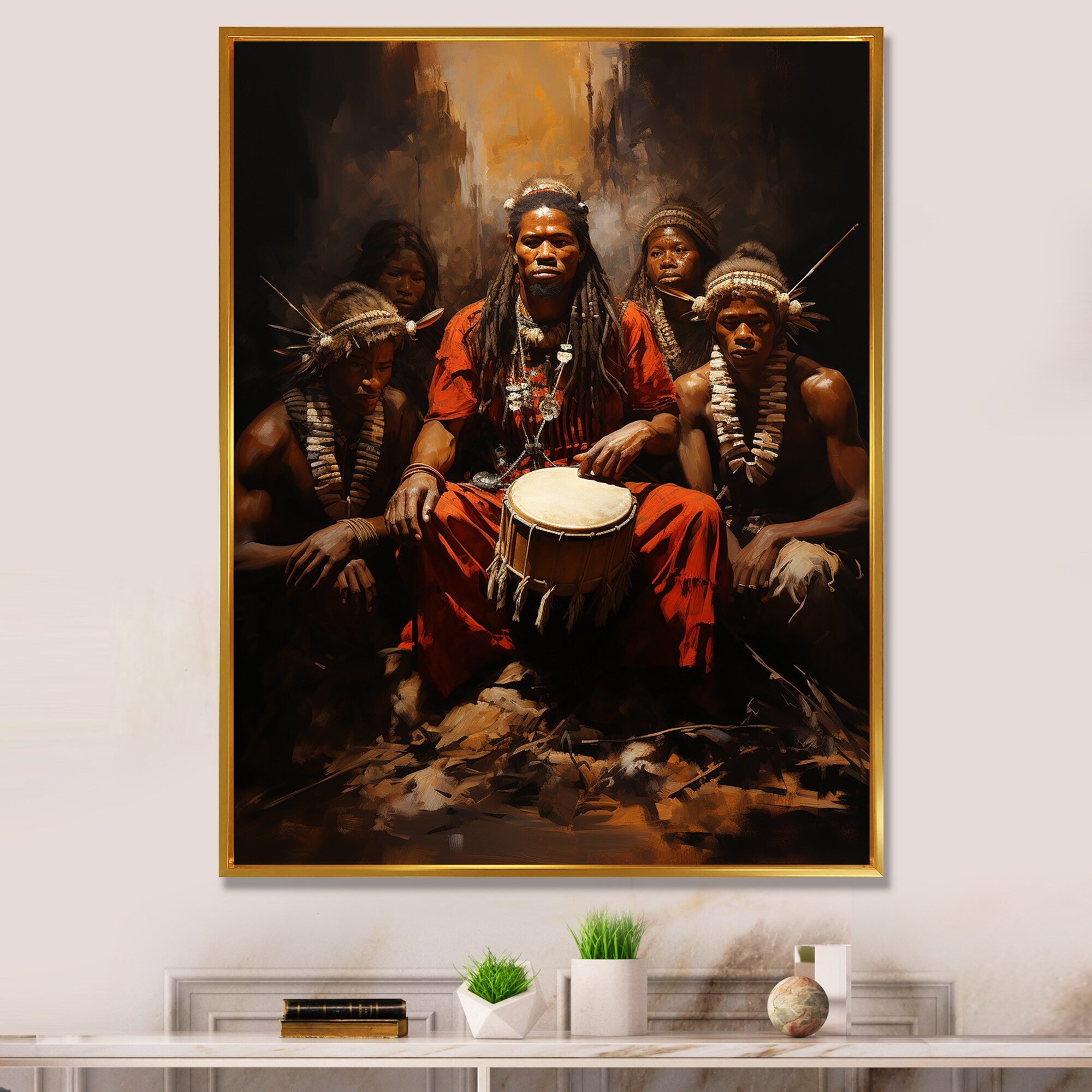 Designart "Music Tribal Drummers Earthy" Music Framed Canvas Print