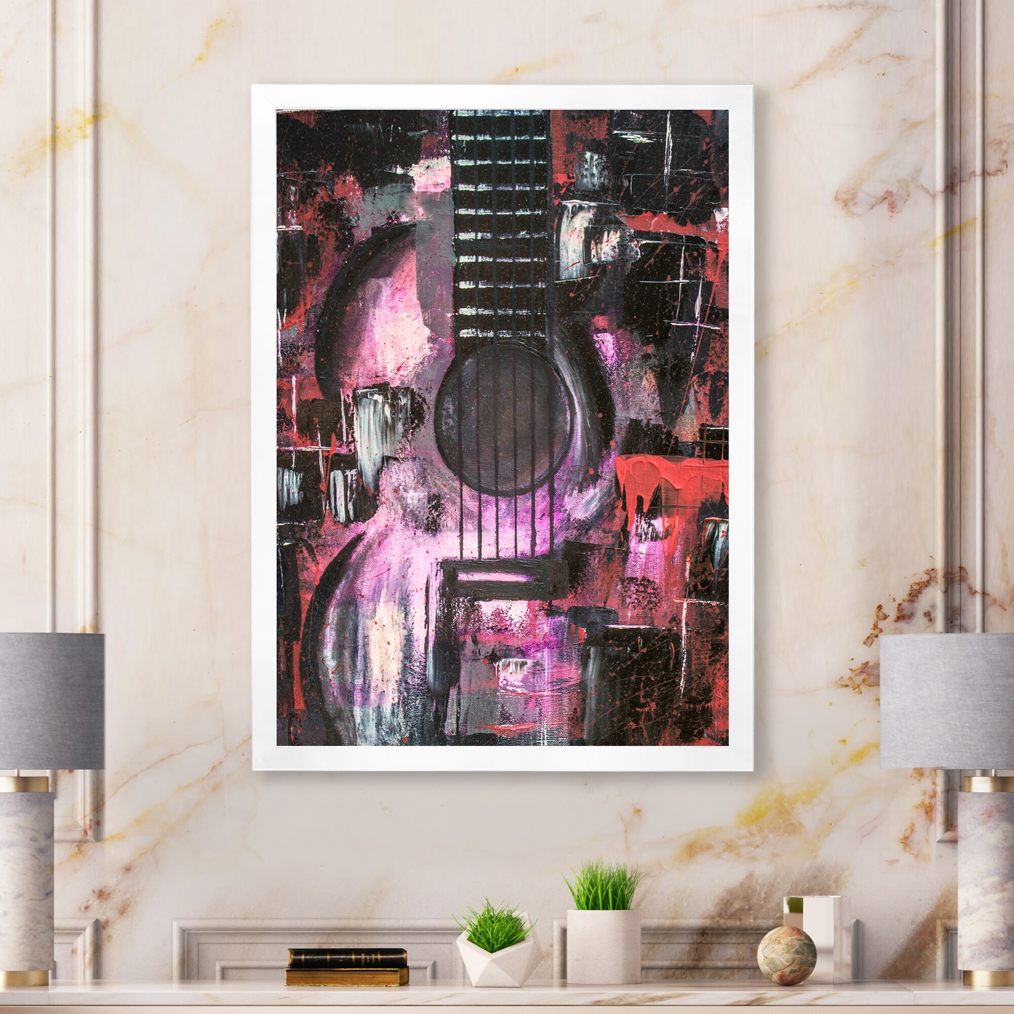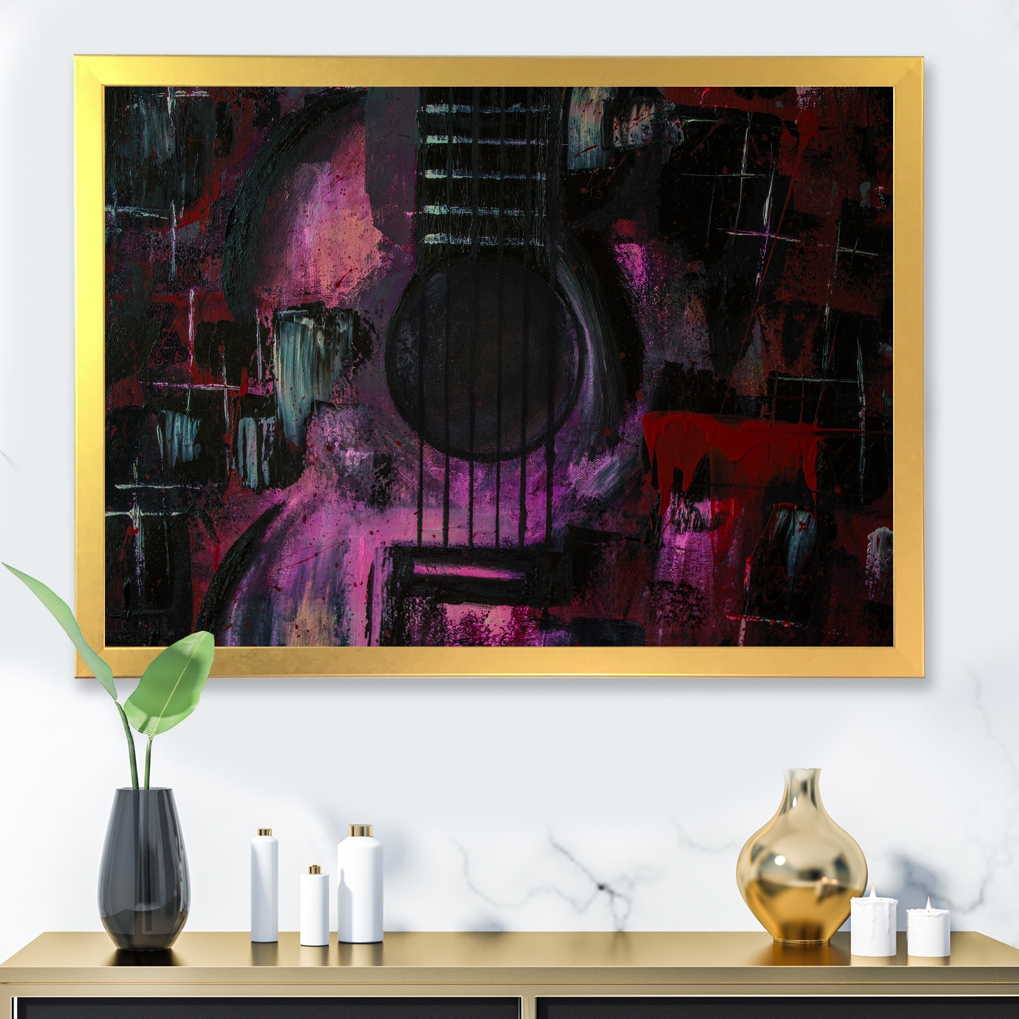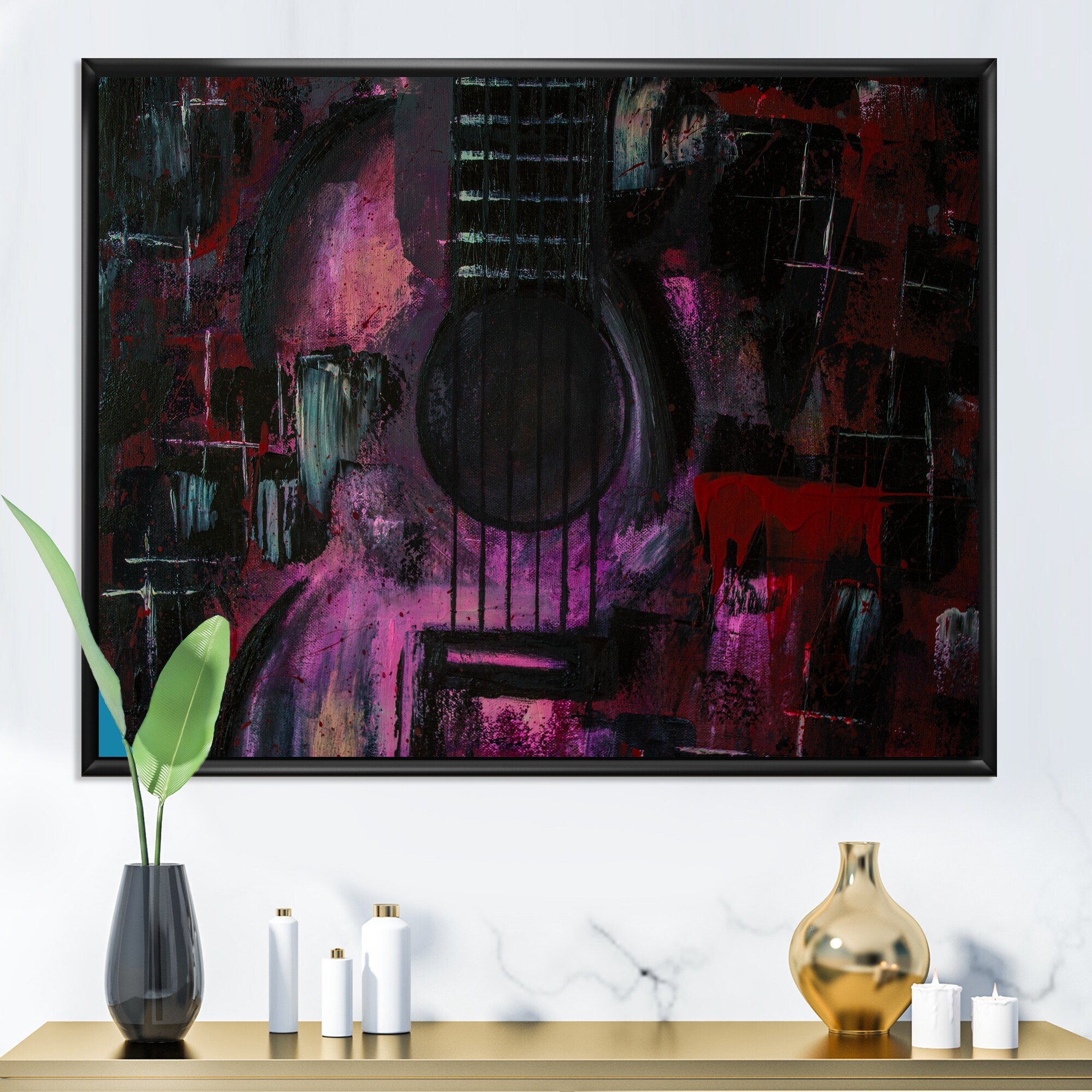 Designart "Purple Music Guitar I" Modern Framed artwork