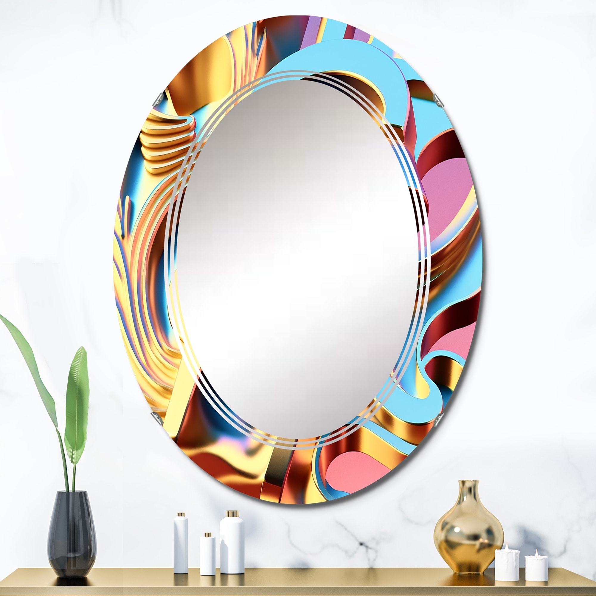 Designart 'Pastel And Gold Abstract Music' Printed Religious Landscape Wall Mirror