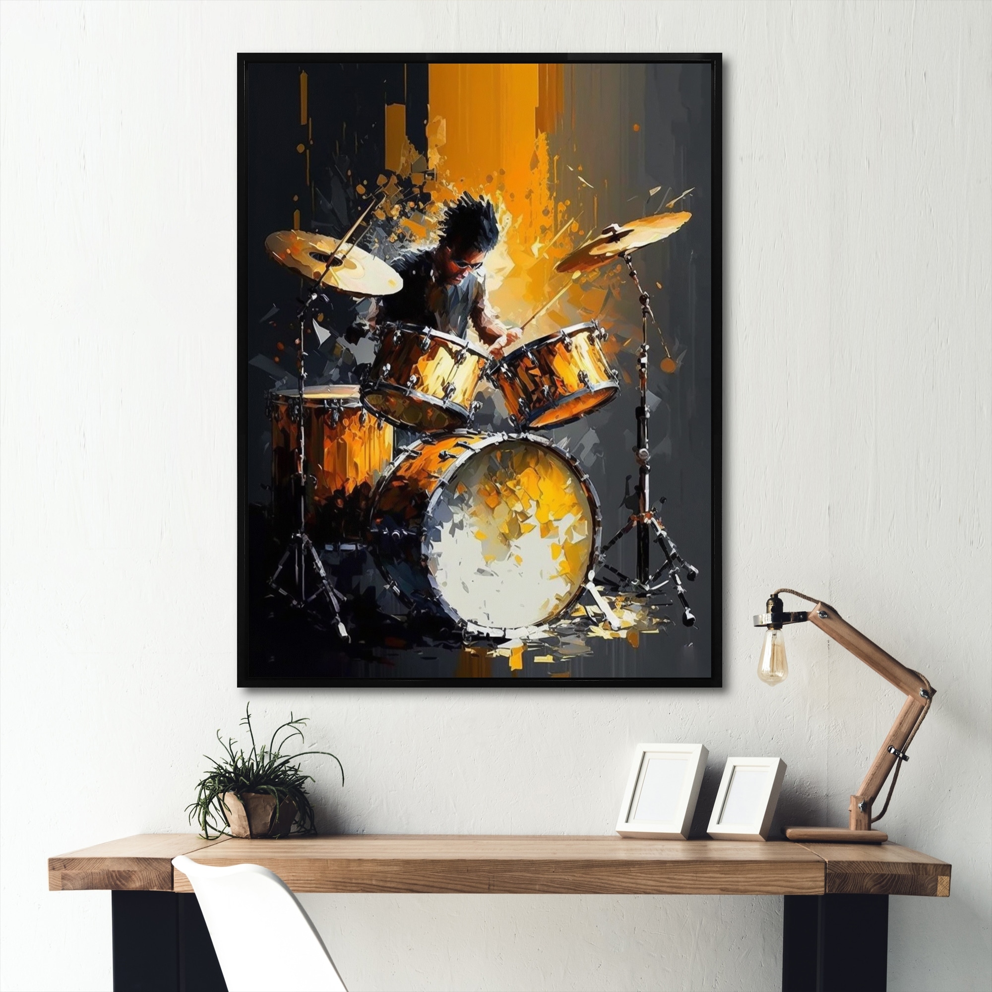 Designart "Drummer On Stage" Music Framed Canvas Art Print