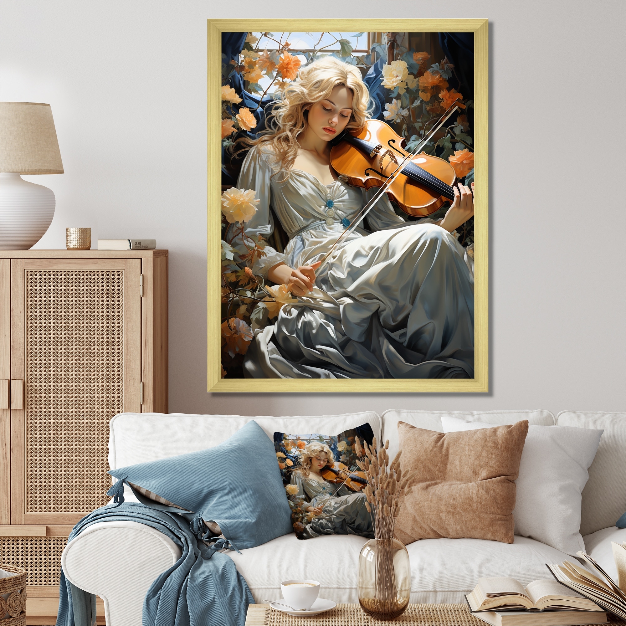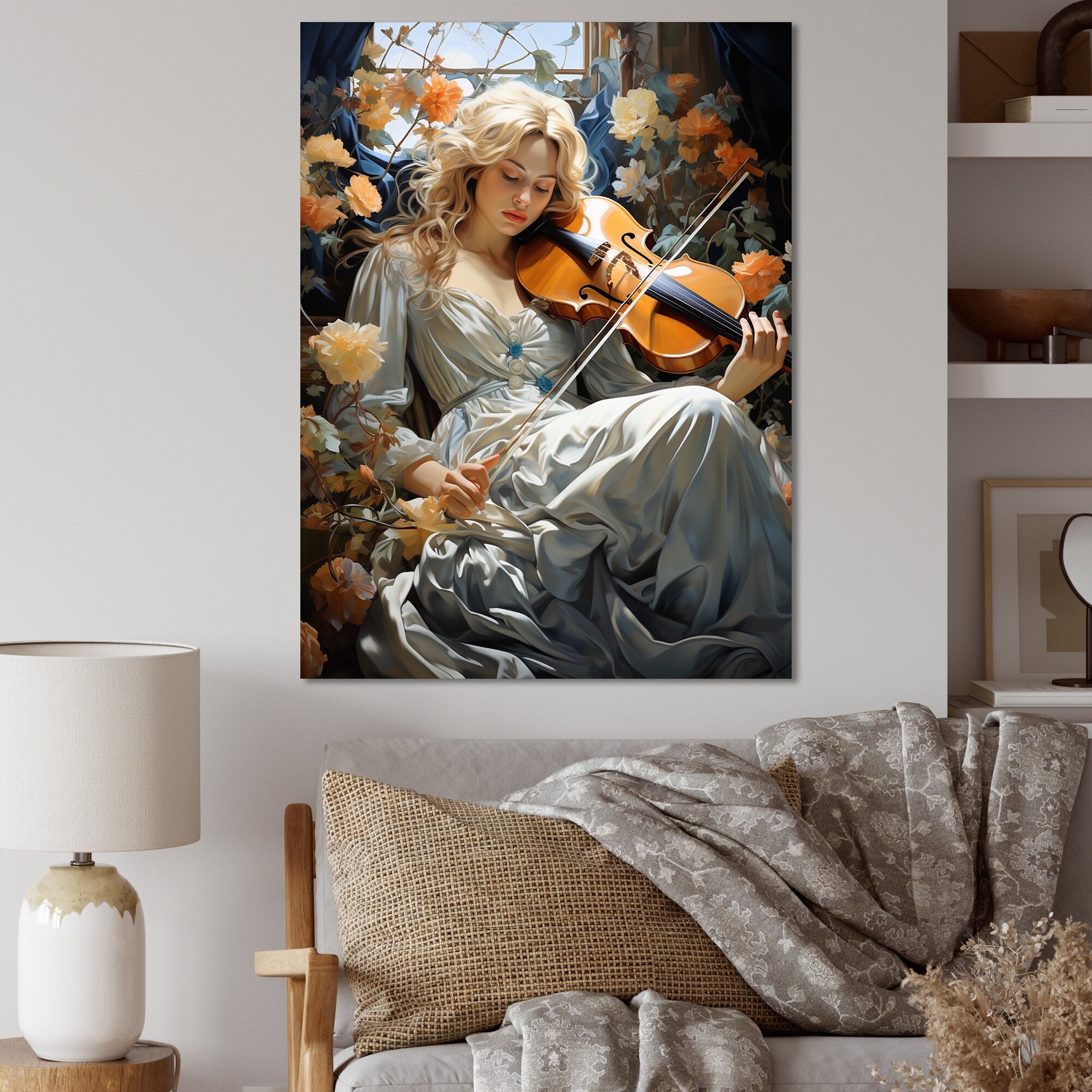 Designart "The Modern Violinist Ii" Music Framed Canvas Wall Art