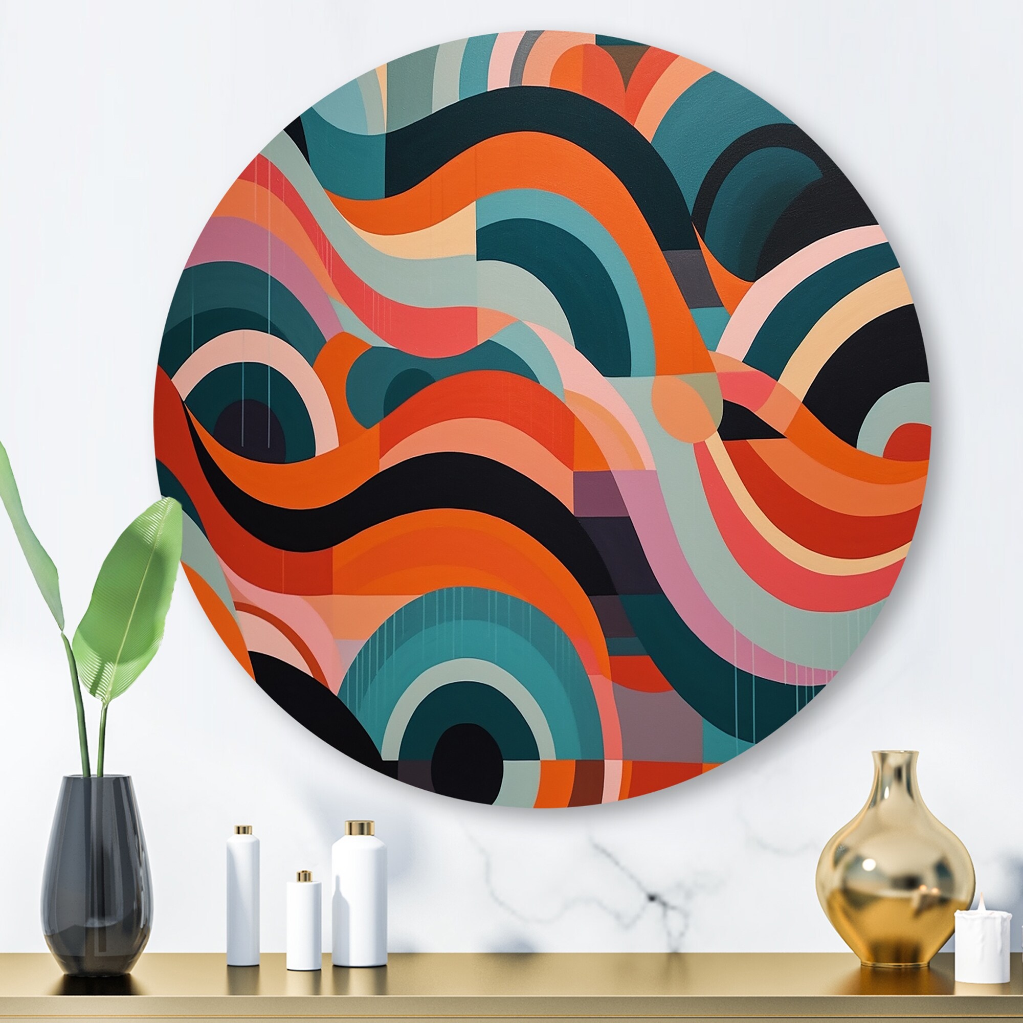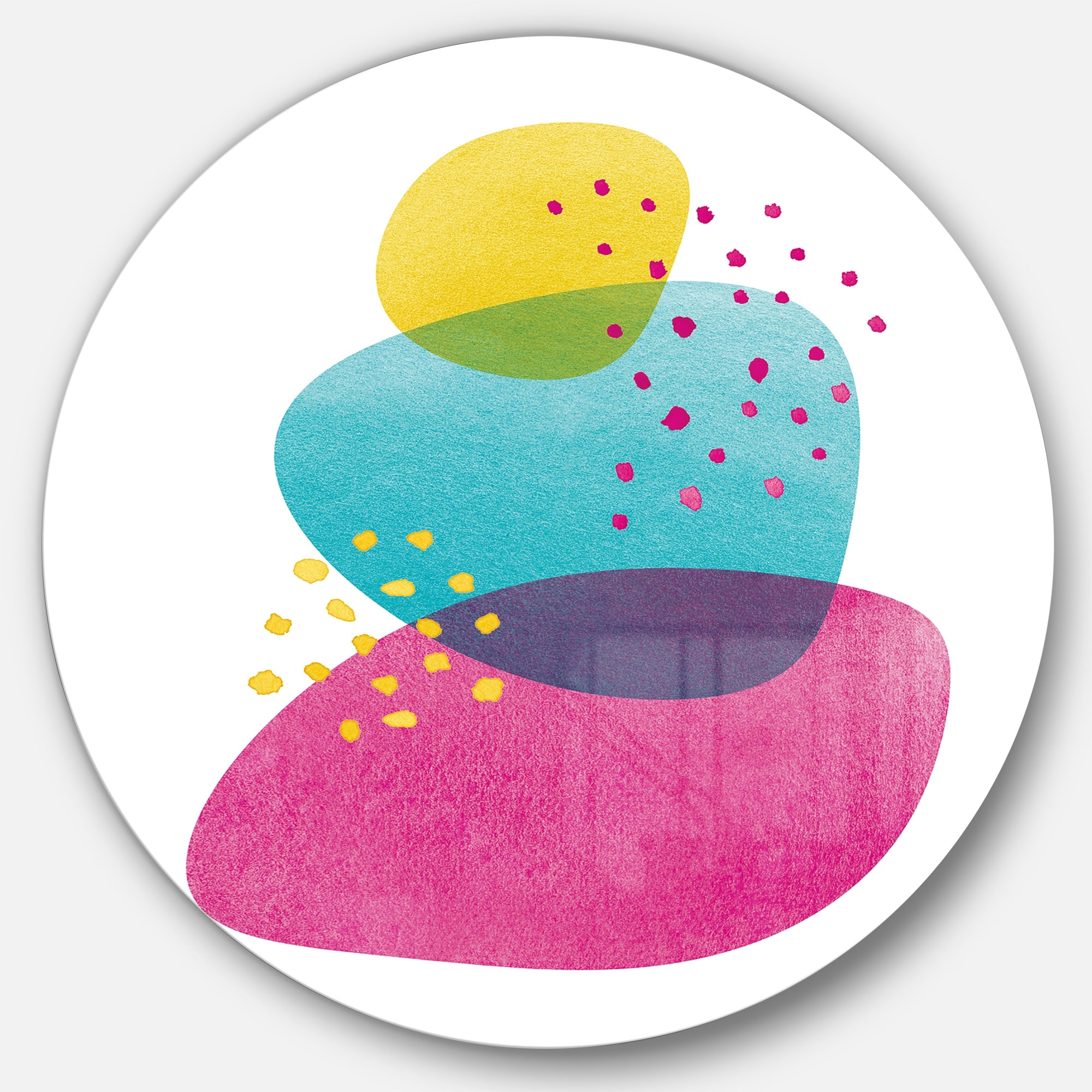 Designart "Abstracted Forms in Balance III" Modern Midcentury Metal Round Wall Art