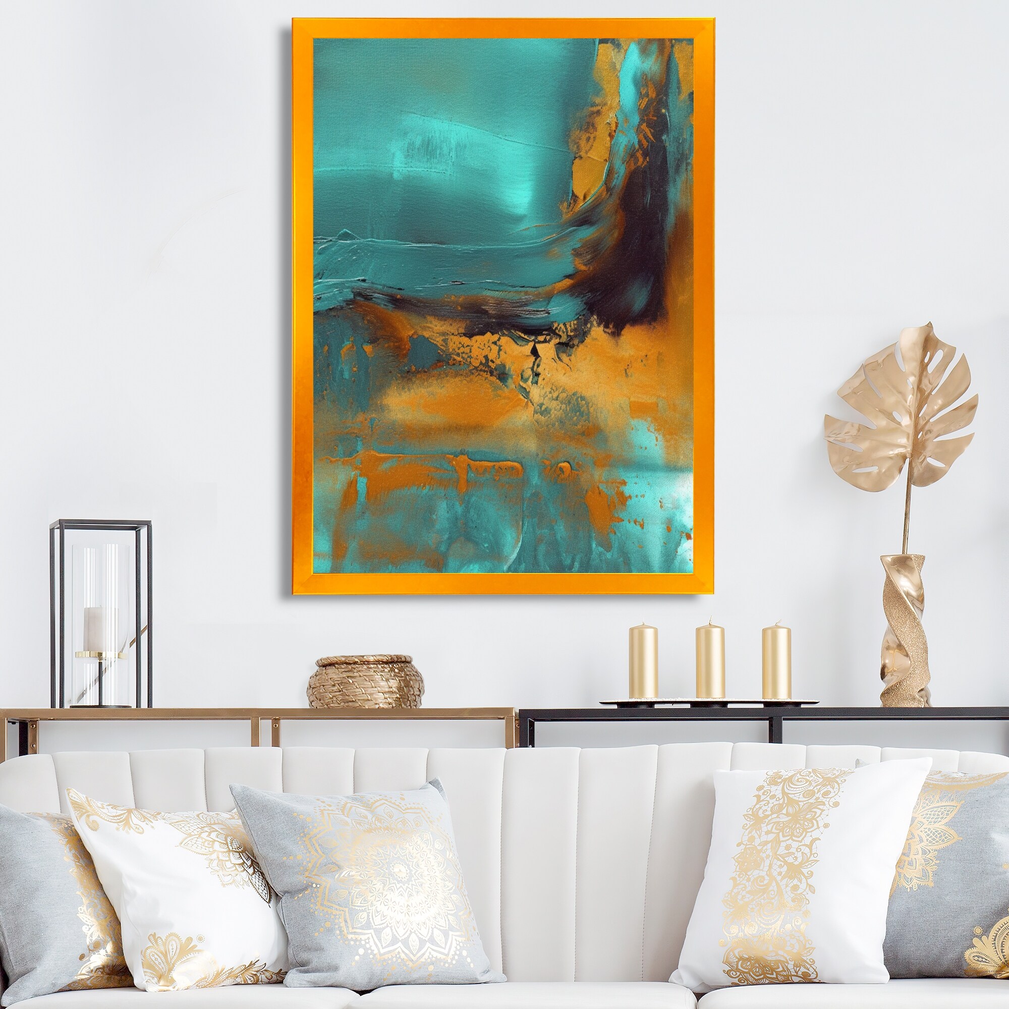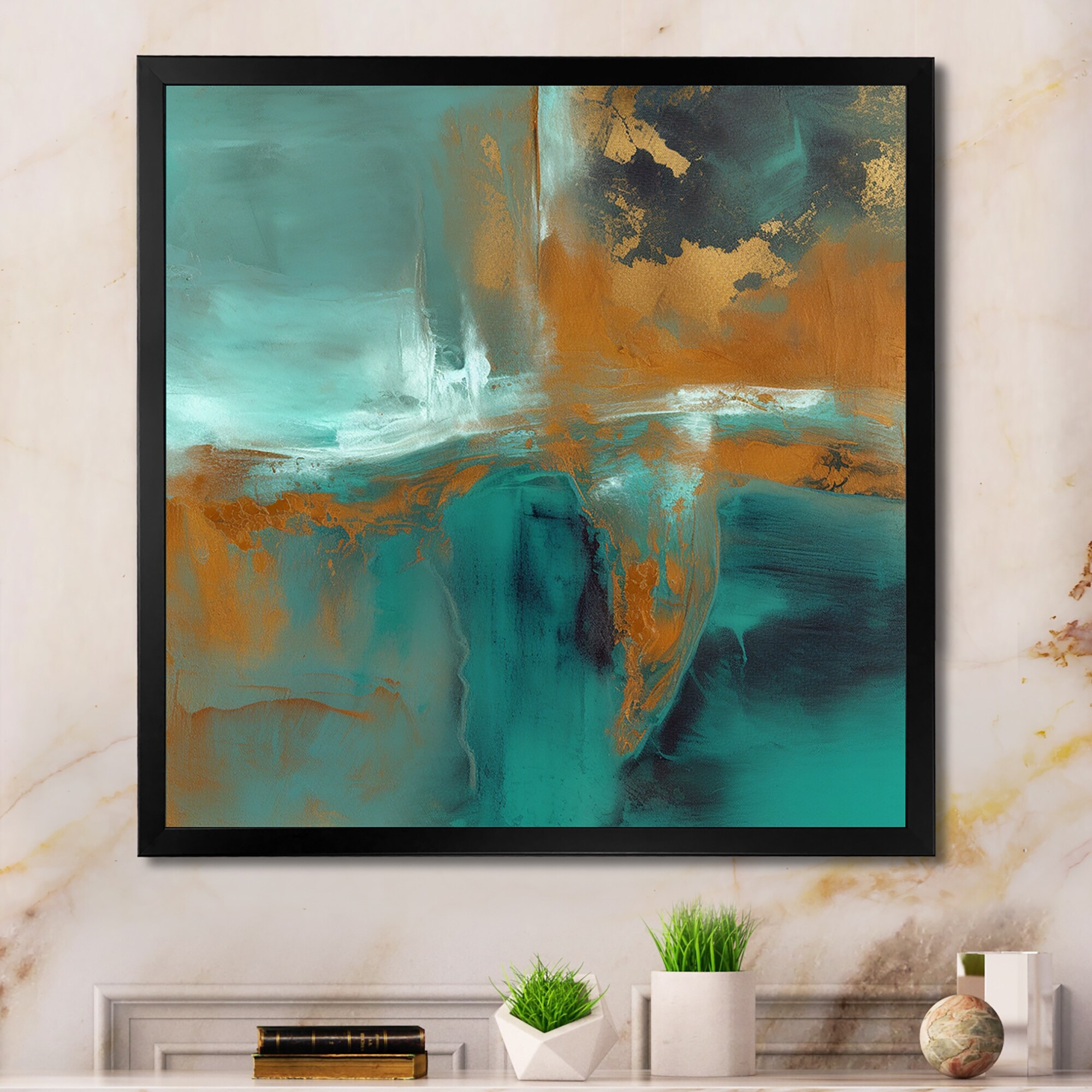 Designart "Teal Balance II" Abstract Painting Framed Canvas Wall Art