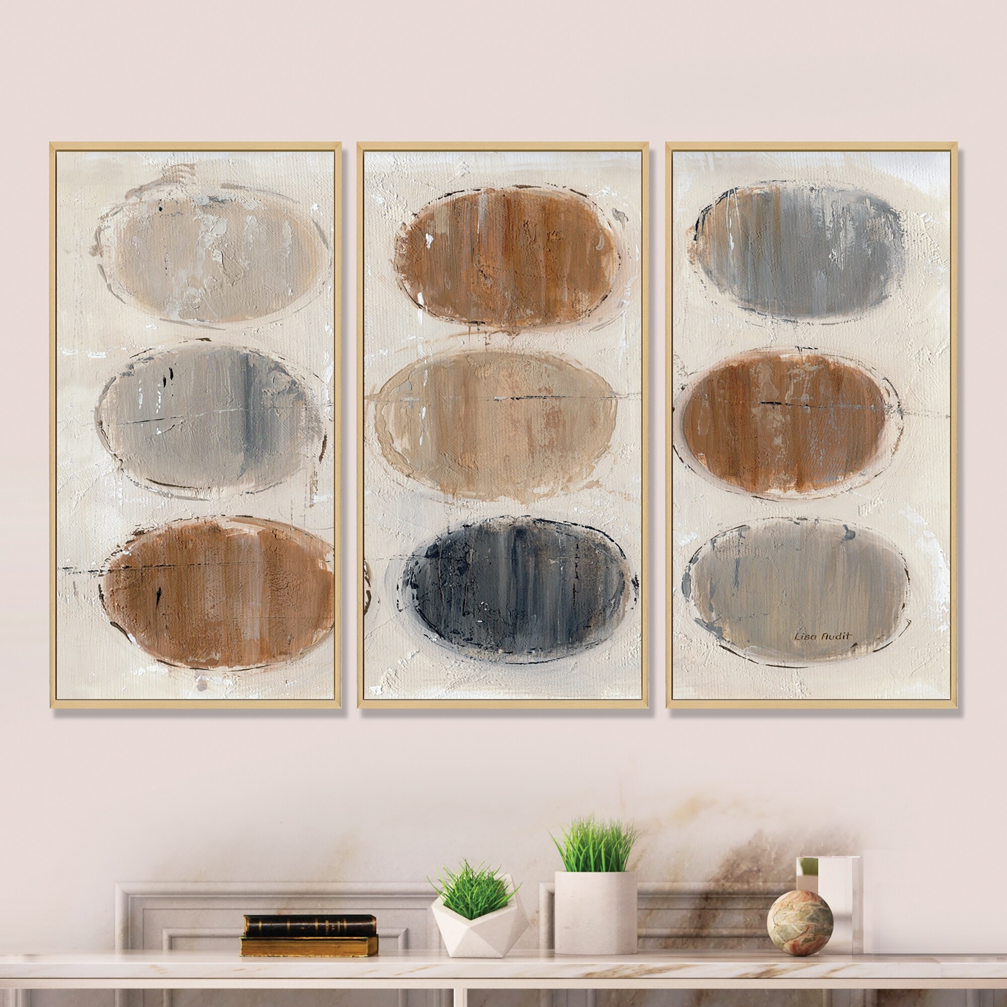 Designart "Geometric Circle Natural Balance II" Mid-Century Modern Framed Canvas Wall Art Print Set of 3 - 4 Colors of Frames