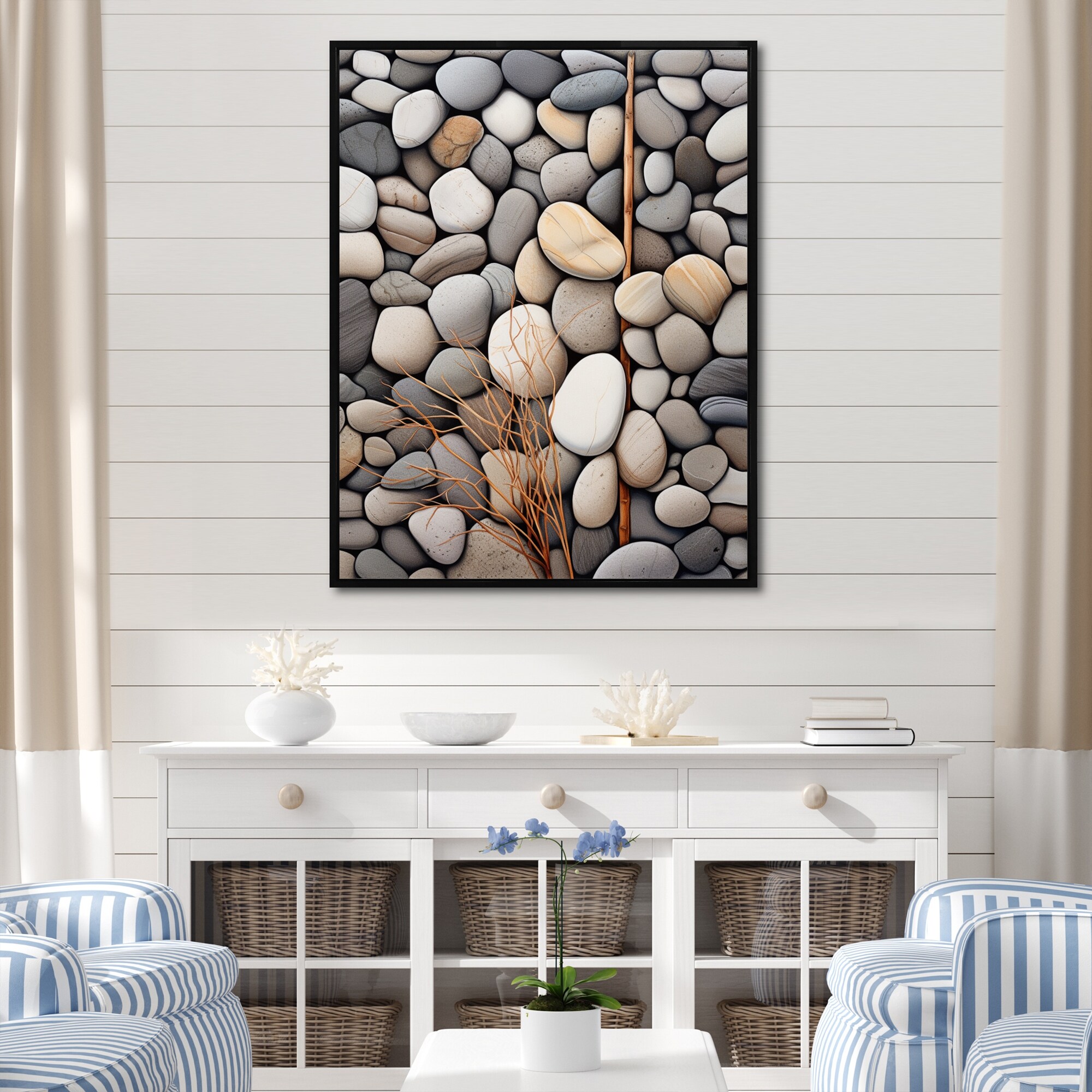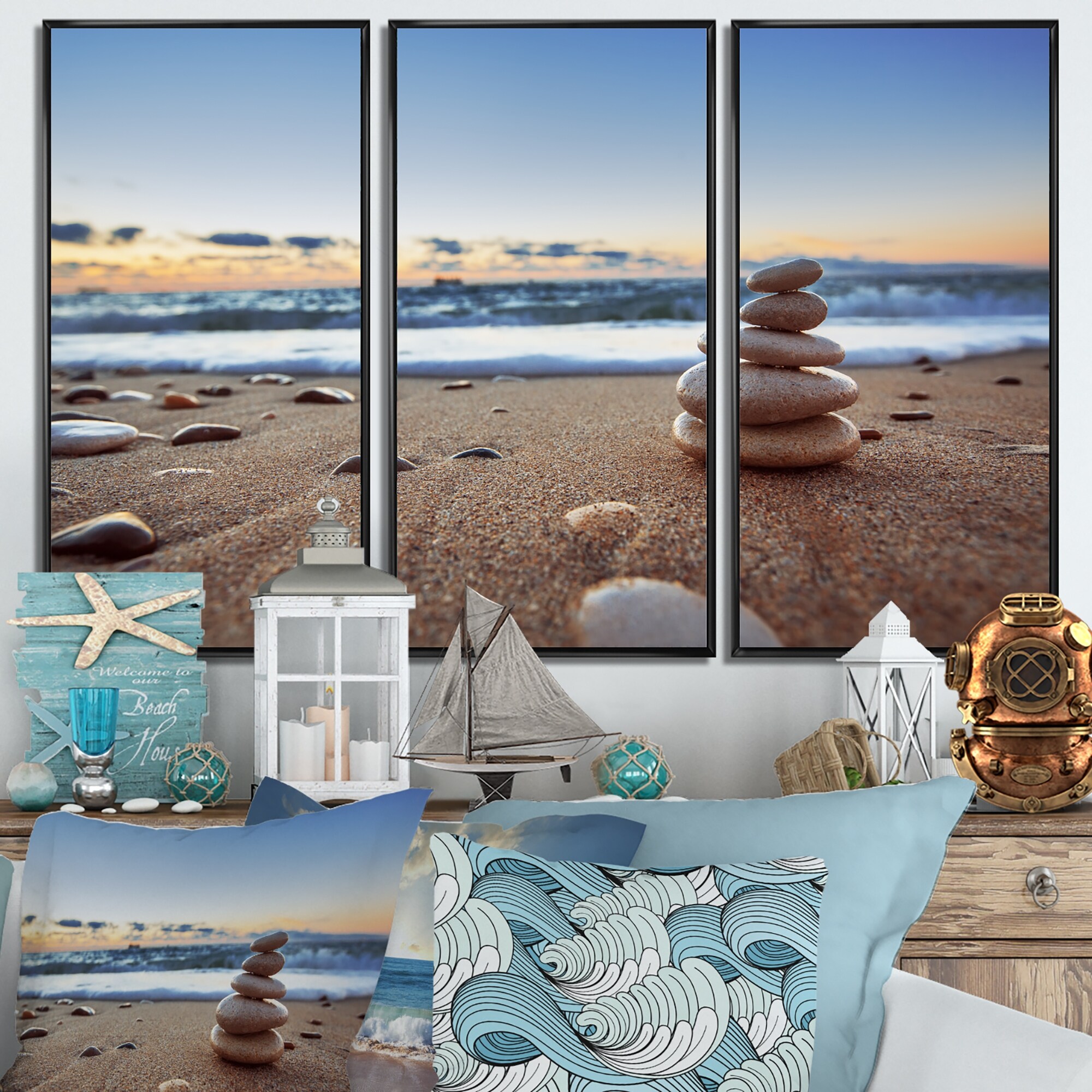 Designart "Stones Balance on Sandy Beach" Sea & Shore Framed Wall Decor Set of 3 - 4 Colors of Frames
