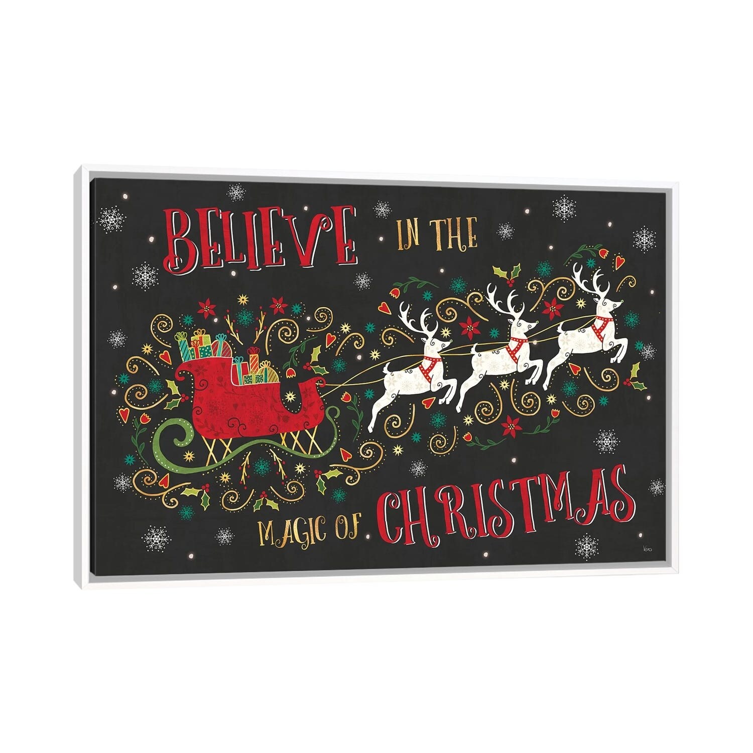 iCanvas "Otomi Holiday V Black" by Veronique Charron Framed