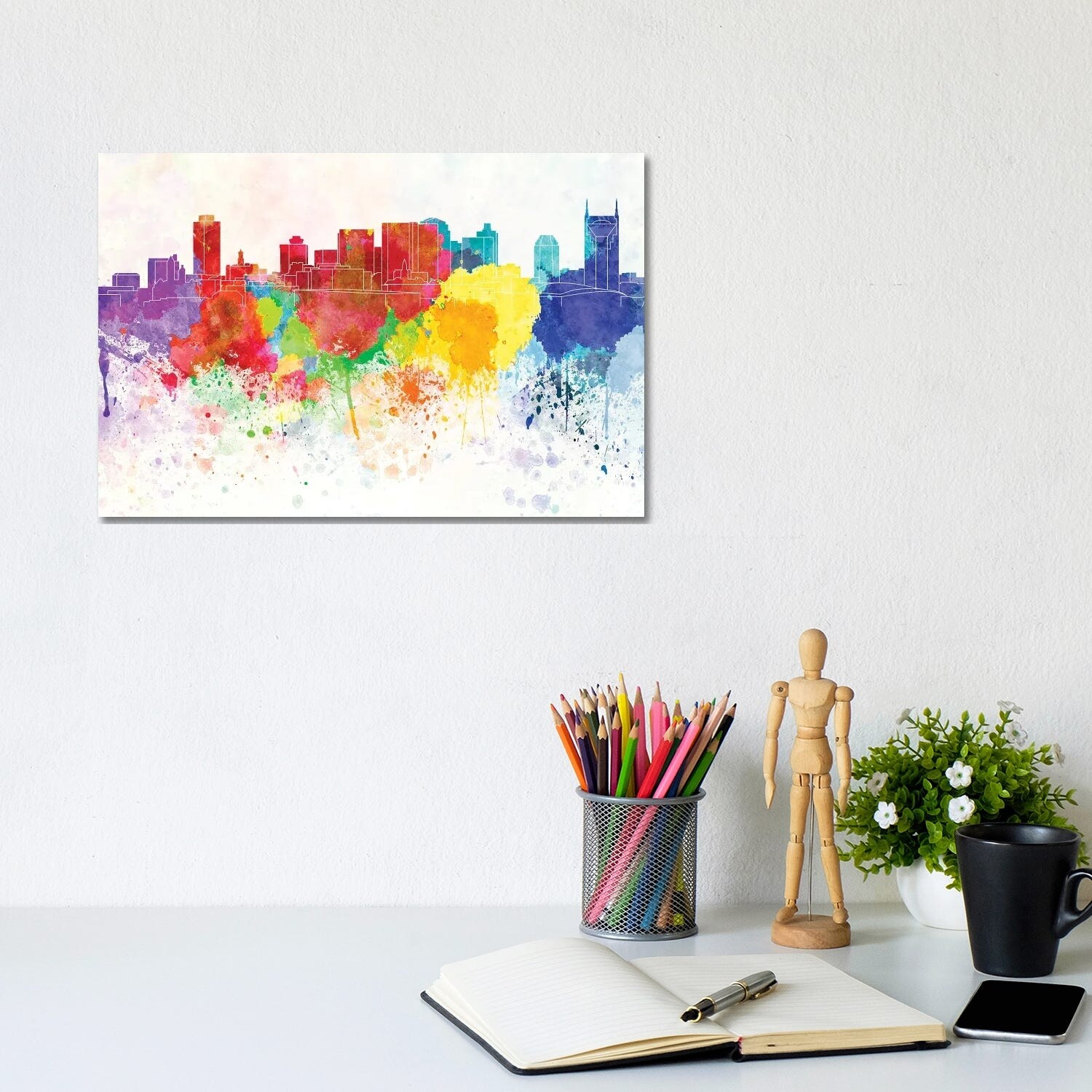 iCanvas "Nashville Skyline in Watercolor Background" by Paul Rommer Canvas Print