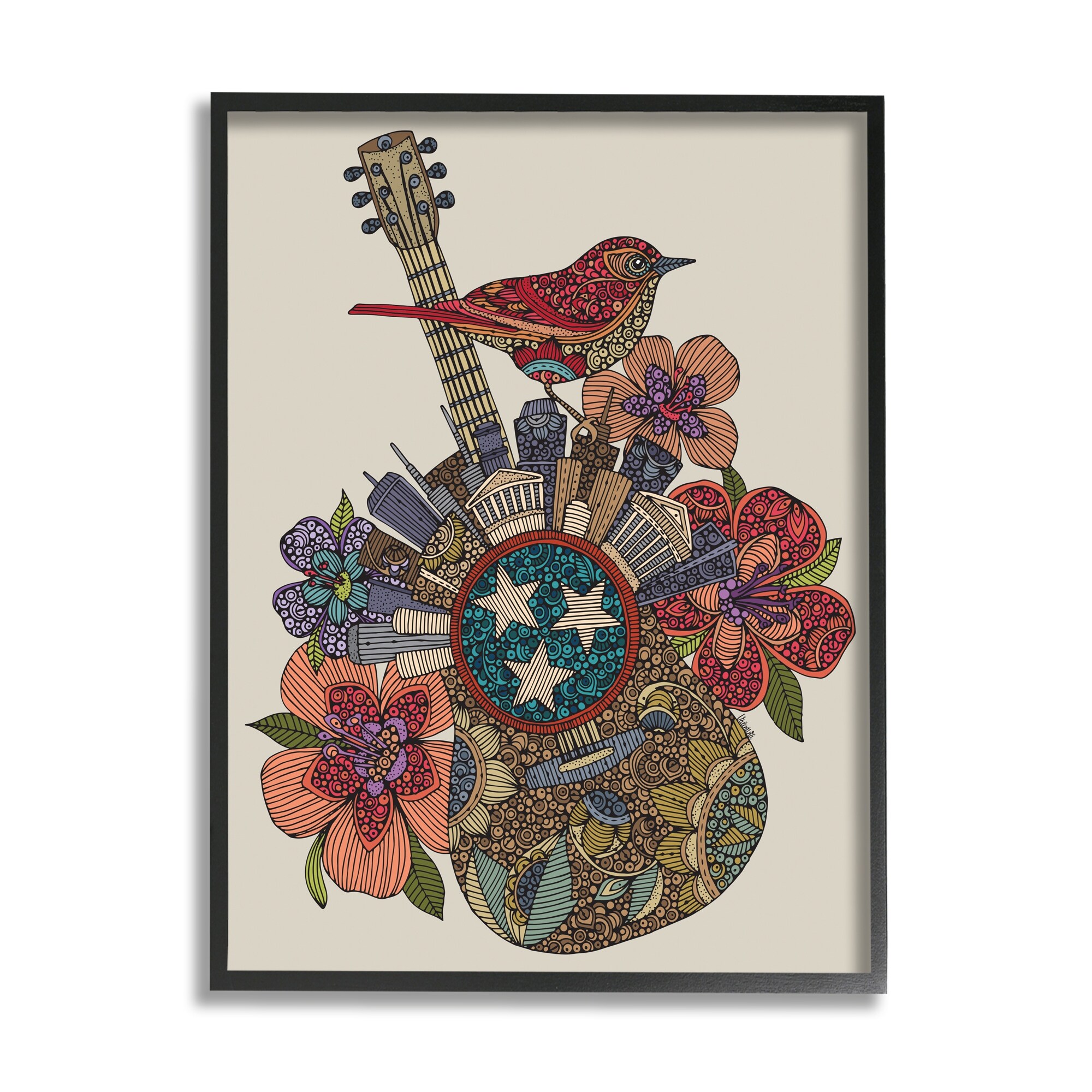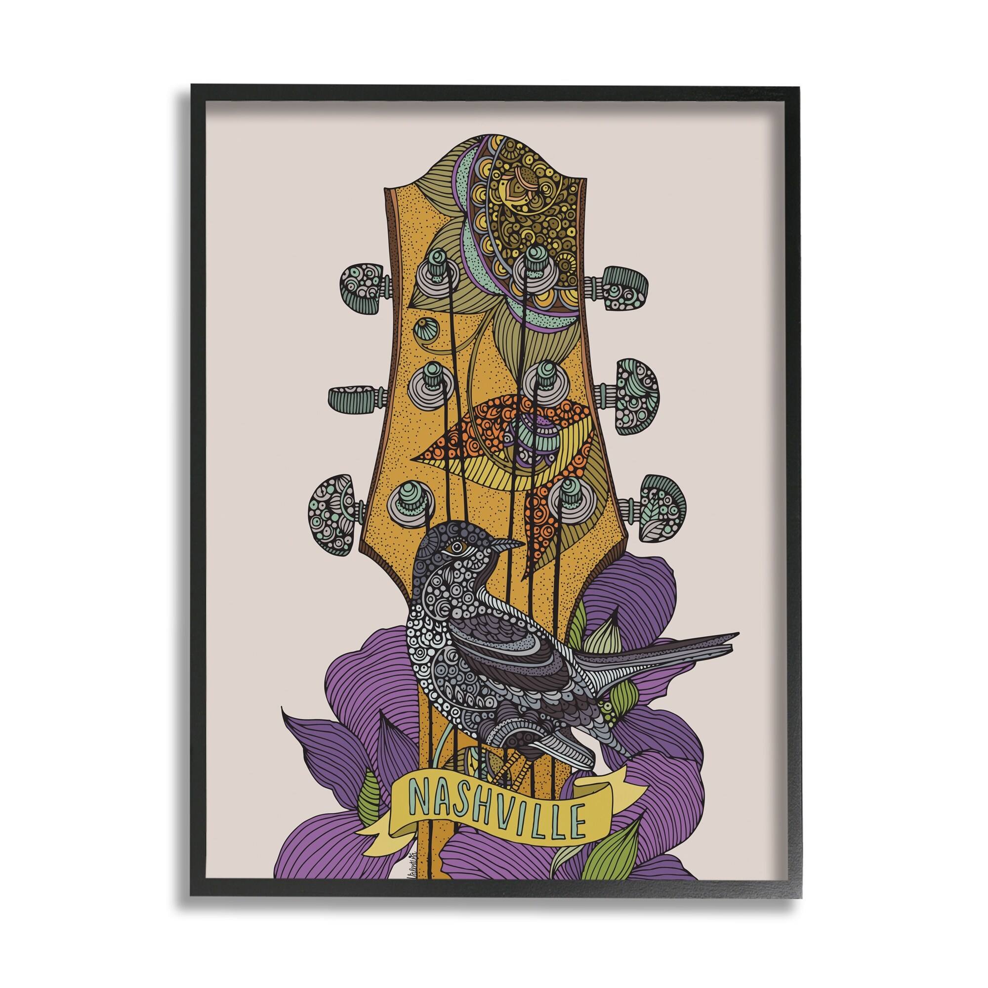 Stupell Intricate Nashville Guitar Floral Patterned Bird Perched Framed Wall Art, Design by Valentina Harper