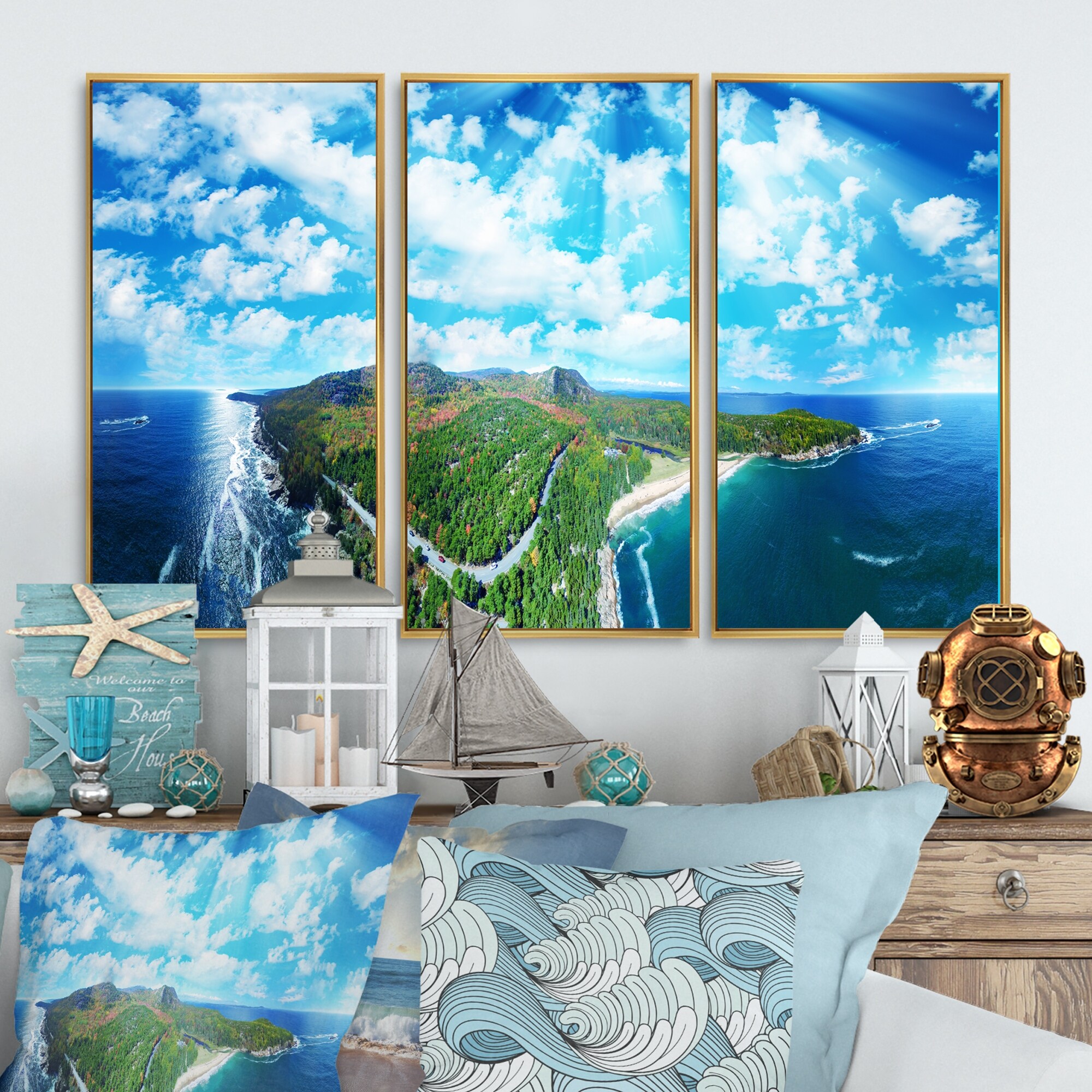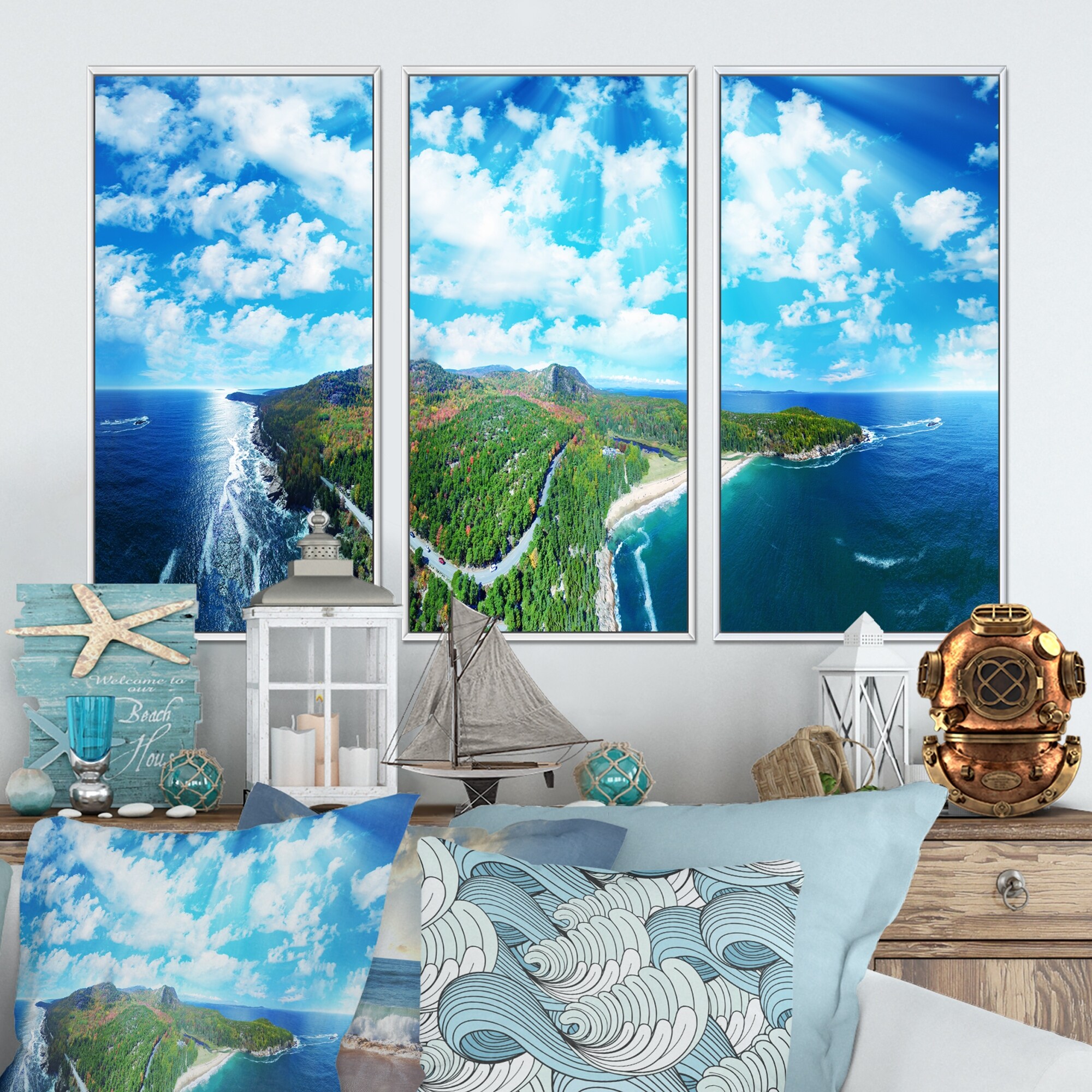 Designart "Panoramic Acadia National Park" Landscape Framed Canvas Wall Art Set of 3 - 4 Colors of Frames