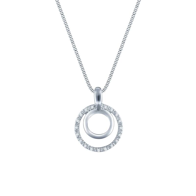 Auriya 1/10cttw Double Circle Accent Diamond Fashion Necklace Sterling Silver (H-I, I1-I2)