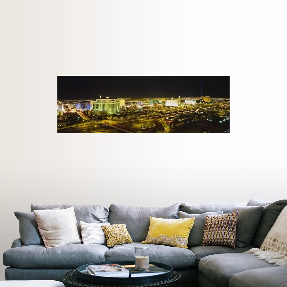 Easy Art Prints Panoramic Image 'High Angle View of Buildings Lit Up at Night, Las Vegas, Nevada, USA' Canvas Art