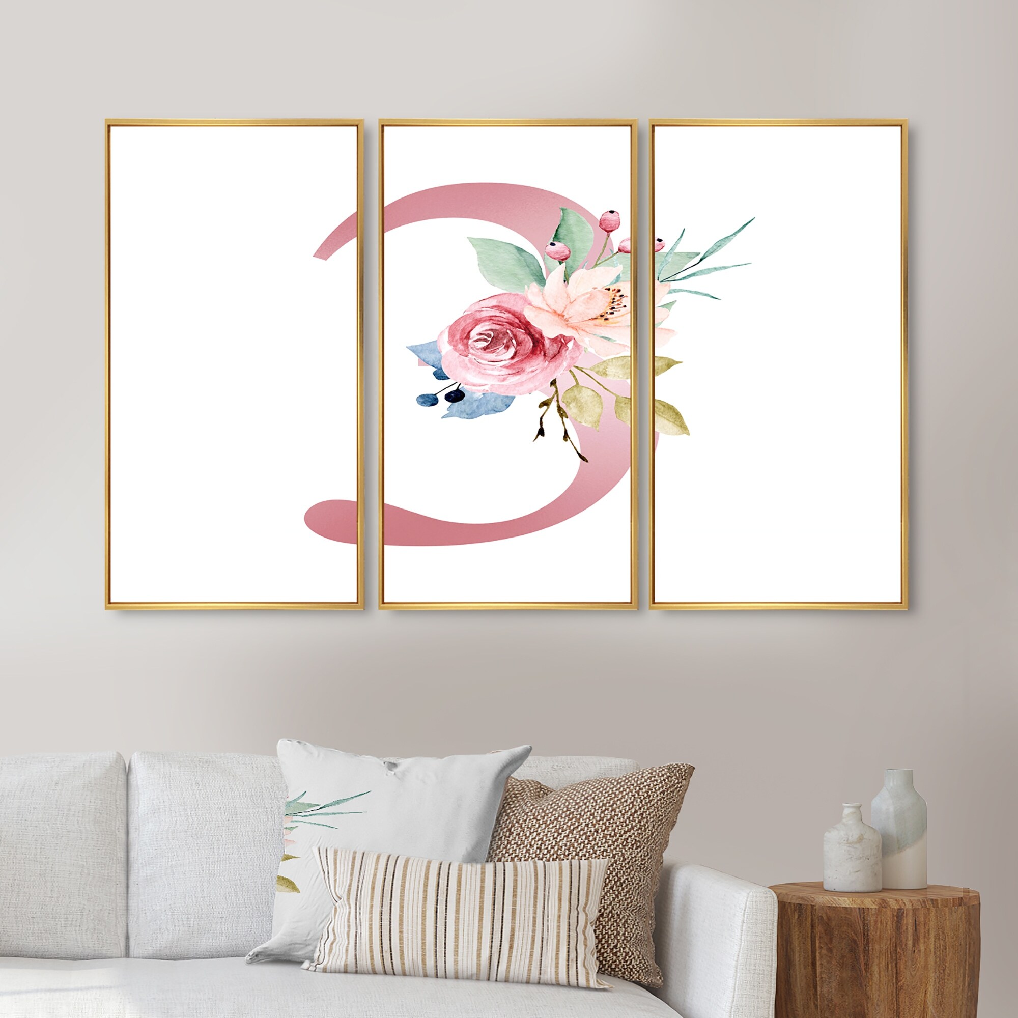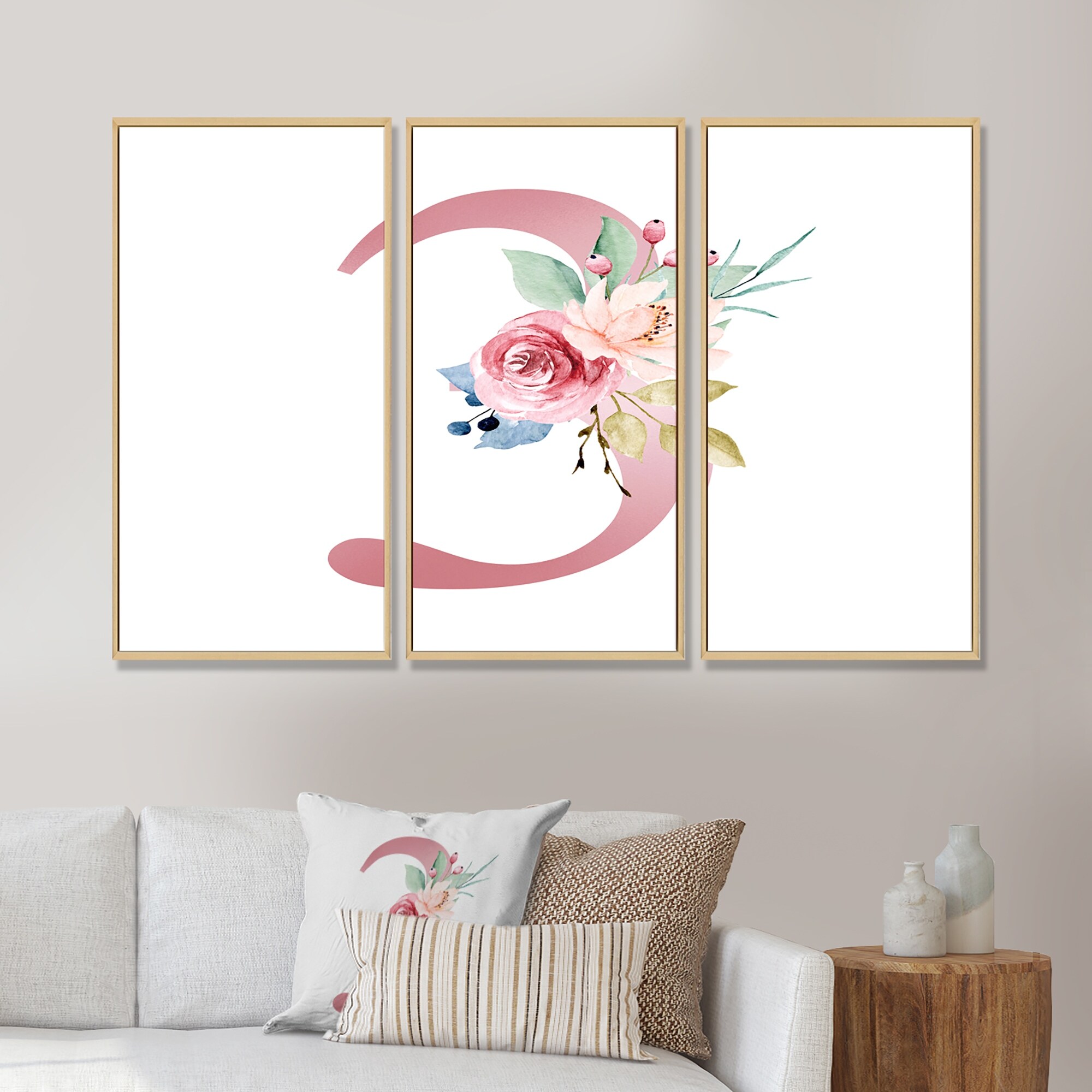 Designart "Floral Art Design With Number Three II" Traditional Framed Wall Decor Set of 3 - 4 Colors of Frames