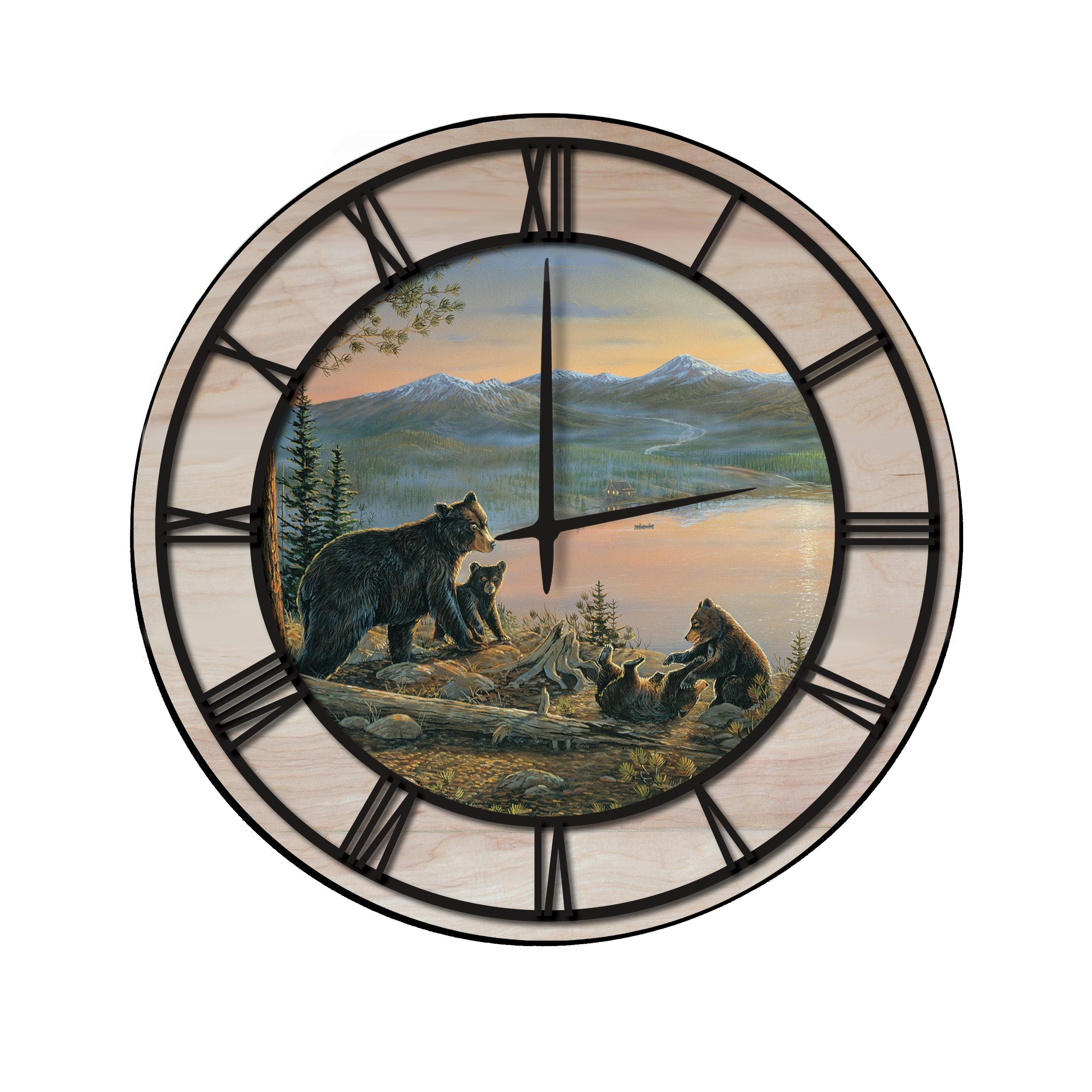 Wall Clock with Full Coverage Art - Playtime Bears - Black Numbers - 24" x 24"