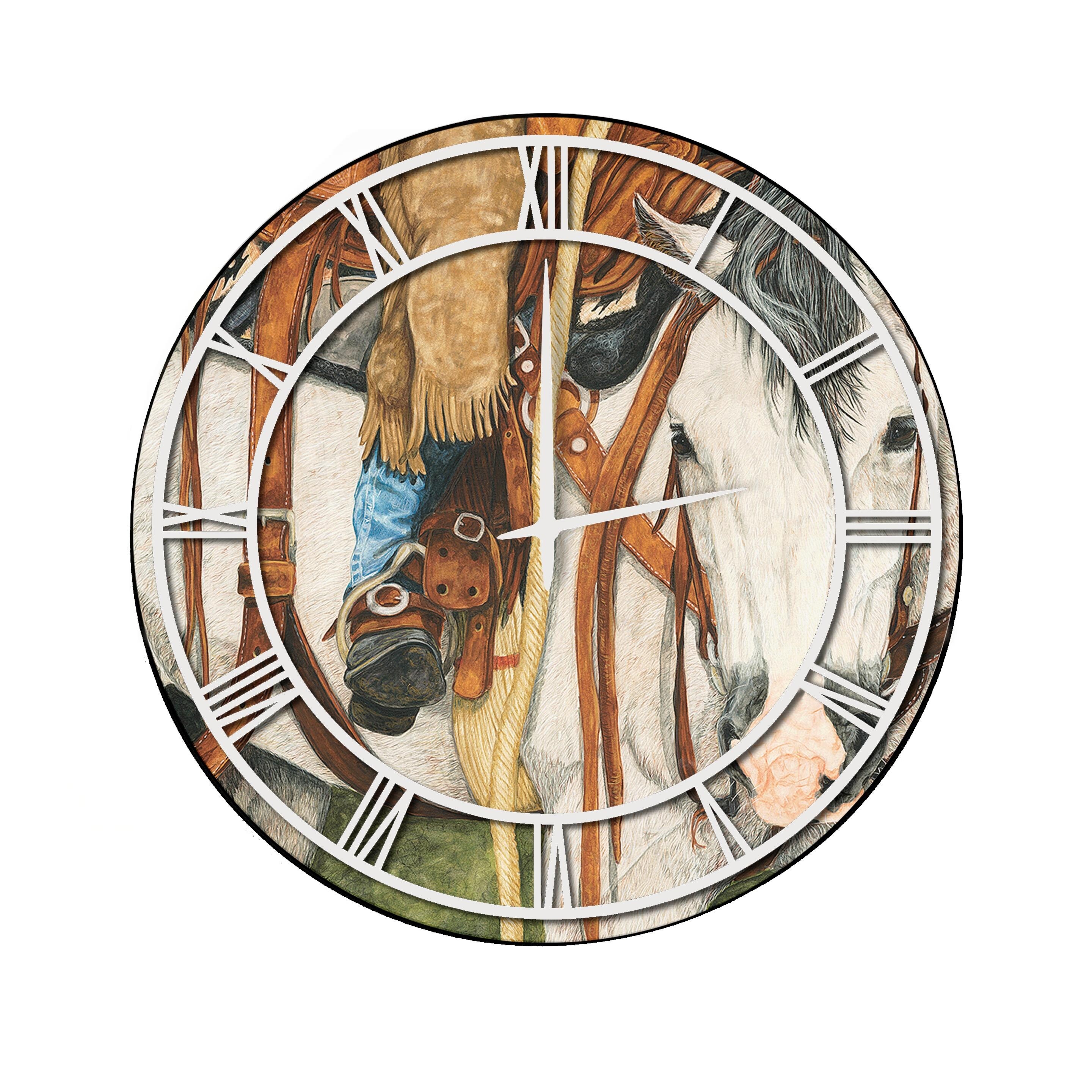 Wall Clock with Natural Woodgrain Accent - That Western Spirit - White Numbers - 24" x 24"