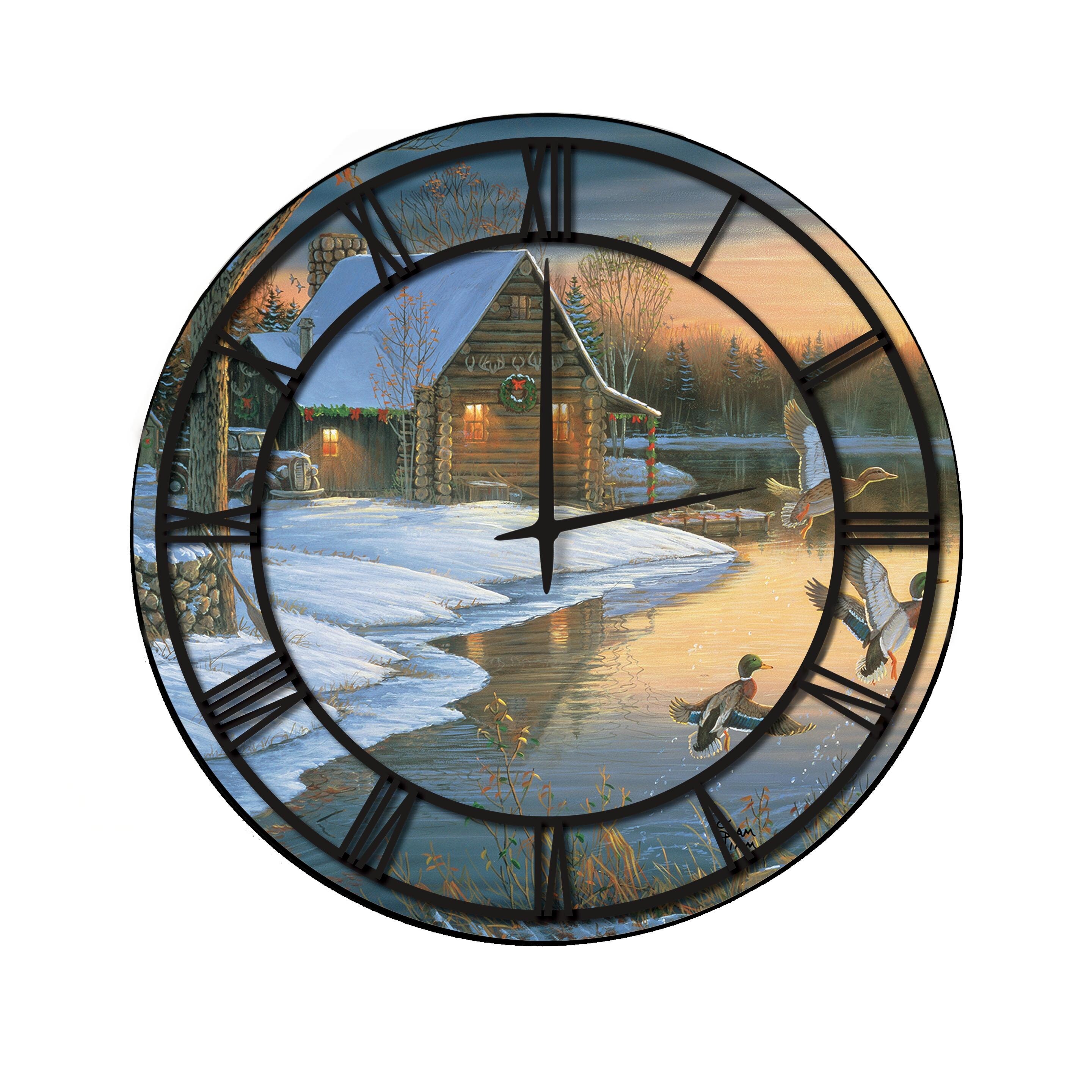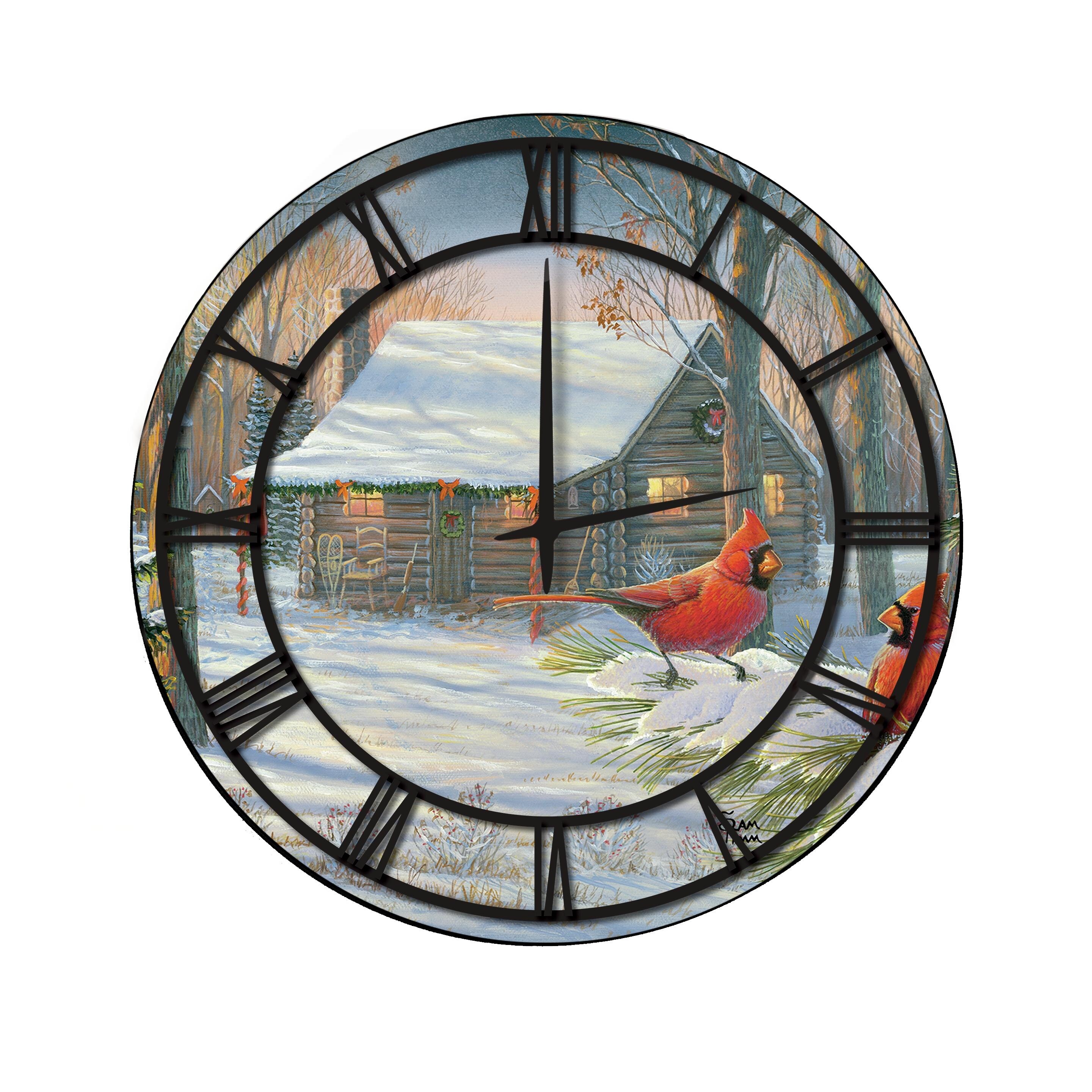 Wall Clock with Full Coverage Art - Cozy Winter Cabin - Black Numbers - 24" x 24"