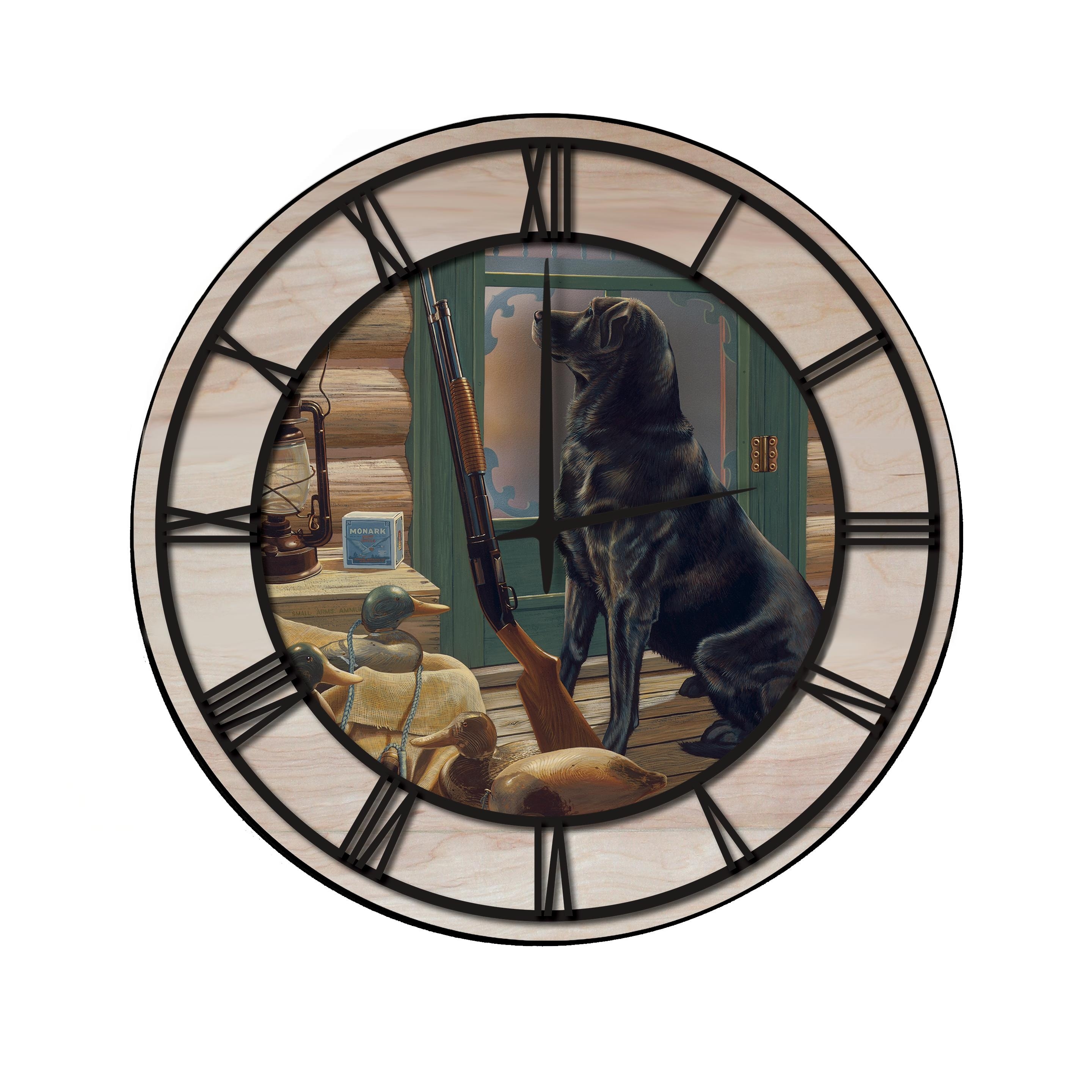 Wall Clock with Natural Woodgrain Accent - Opening Day Lab - Black Numbers - 24" x 24"