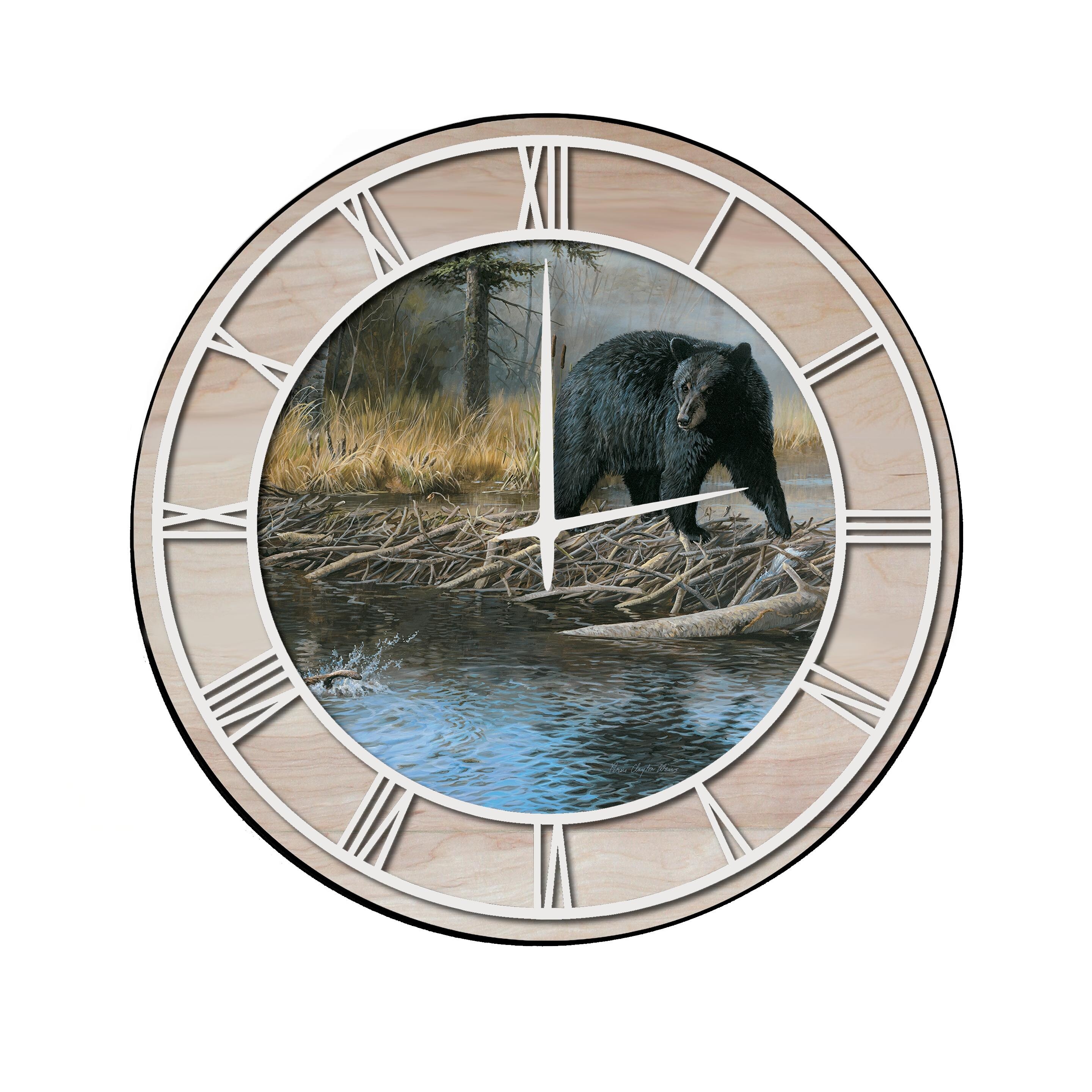 Wall Clock with Natural Woodgrain Accent - No Trespassing Bear - White Numbers - 24" x 24"