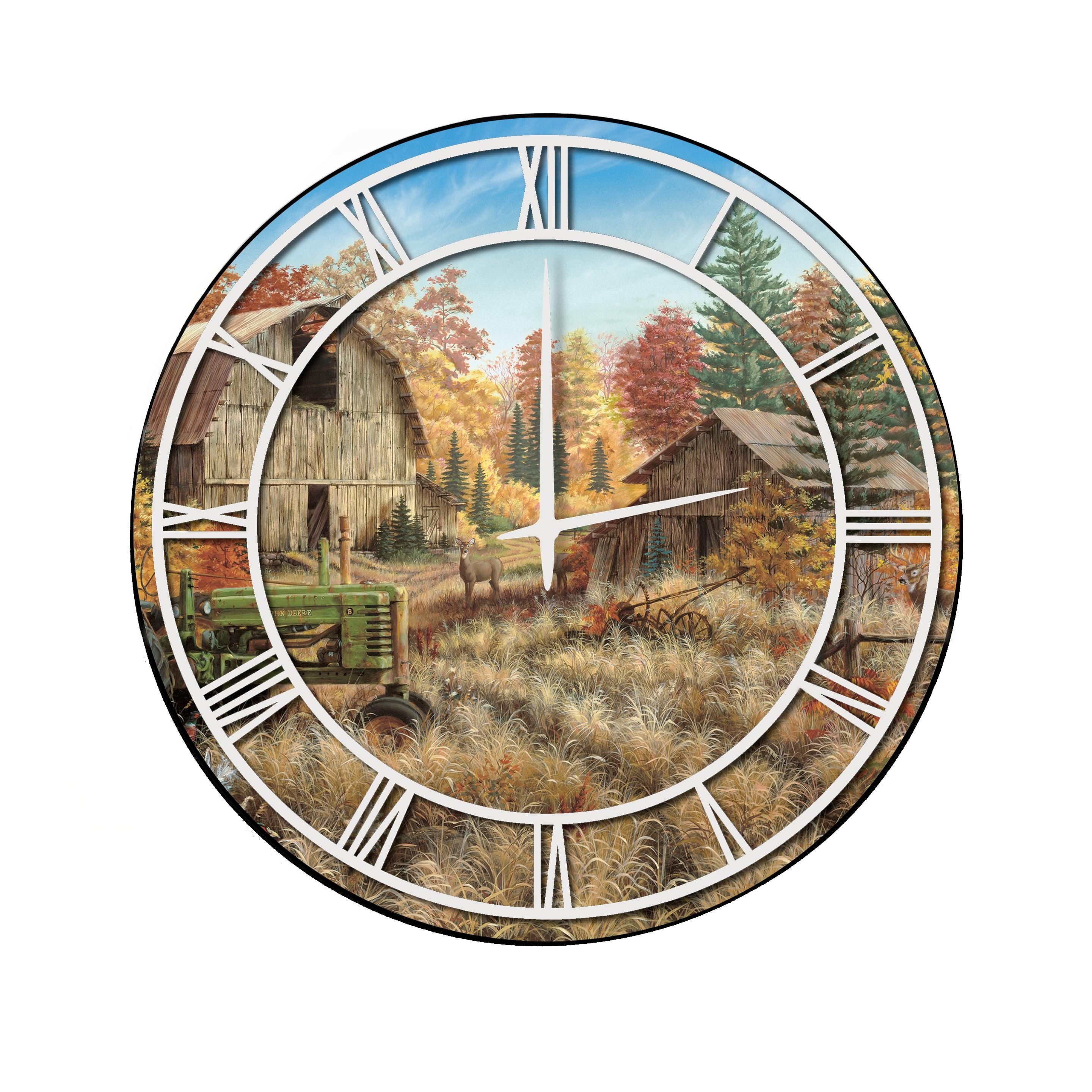 Wall Clock with Natural Woodgrain Accent - Season's End - White Numbers - 24" x 24"